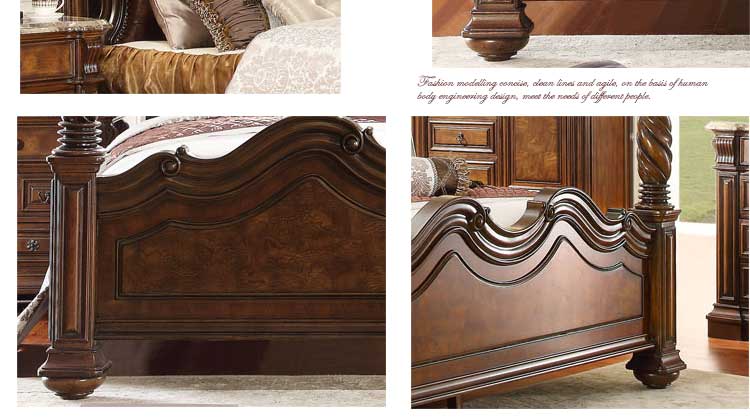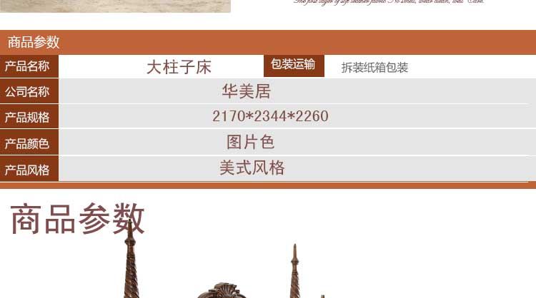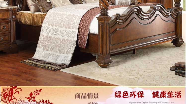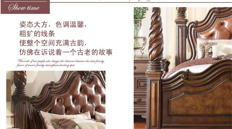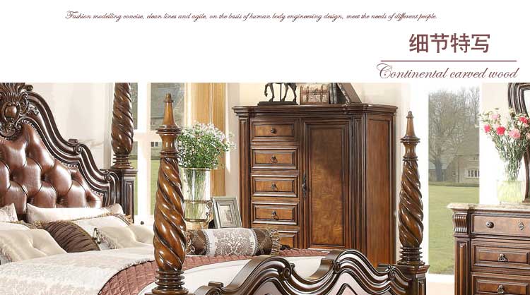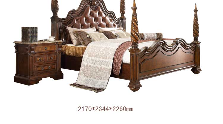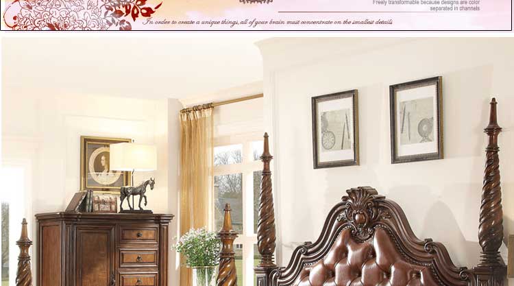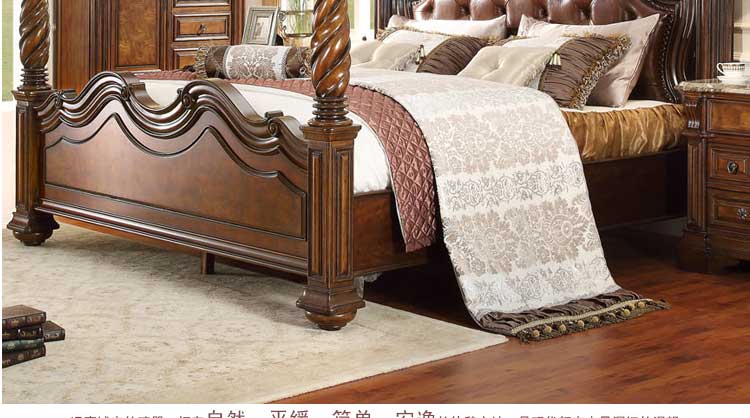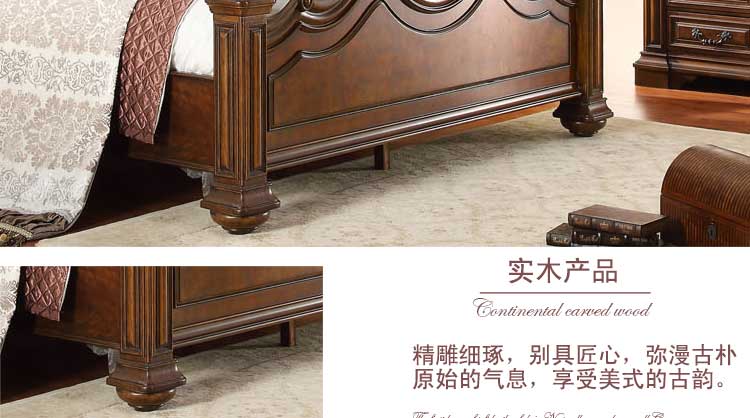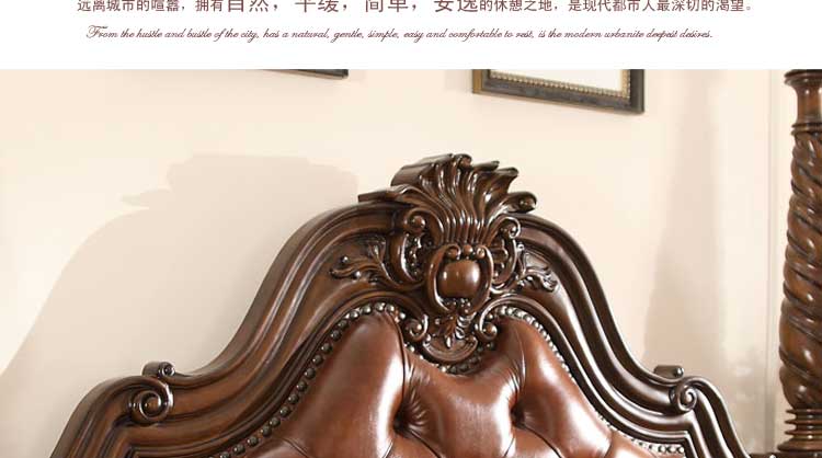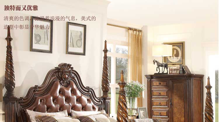 华美居 家具美式床实木床乡村复古美式双人床真皮床 R172-90/1/7
