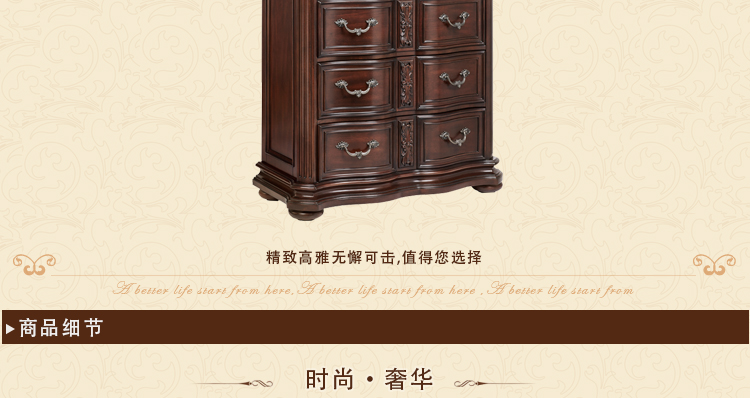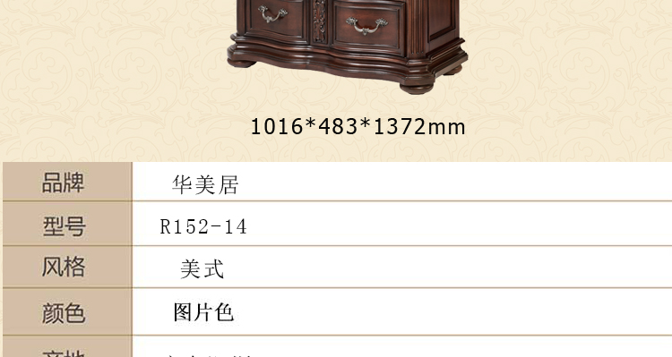 华美居 卧室斗柜鹅掌楸木斗柜美式新款斗柜 R152-14