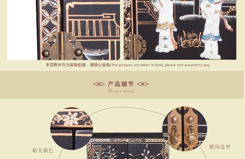 器道家具新款实木双门三斗黑哑光贴贝壳手饰柜JC-6017