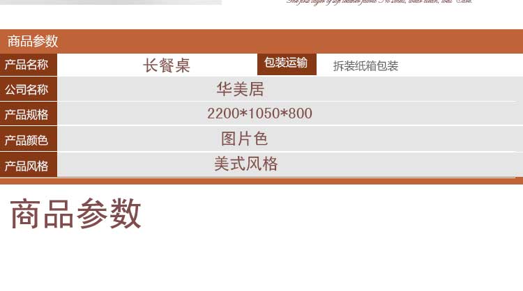 华美居 美式长餐桌 高档简约长餐台 实木谈话桌 古典餐桌 D191N-622T/B