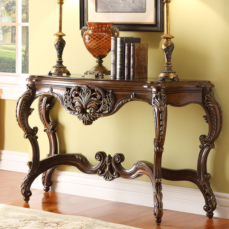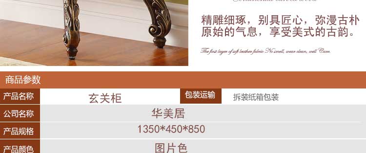 华美居 美式全实木玄关桌 美式墙桌玄关柜 客厅门厅靠墙半圆玄关台D192N-08