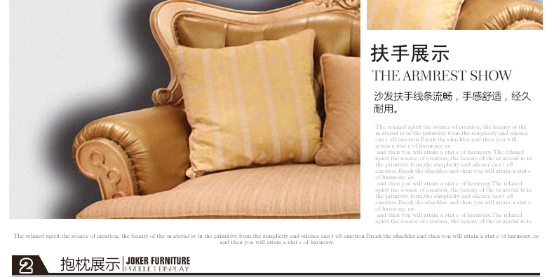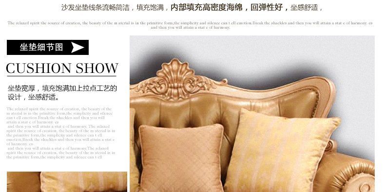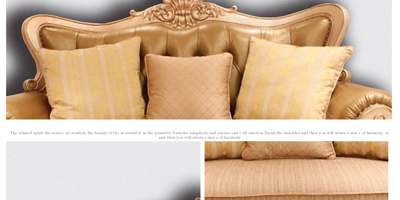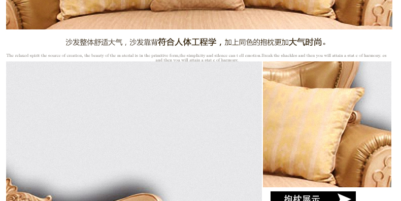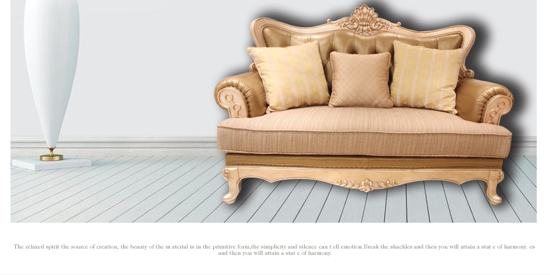 这款欧式香槟金真皮沙发摆在客厅就是上档次!