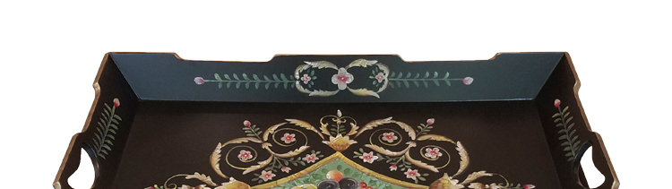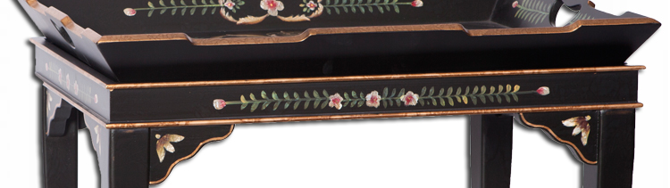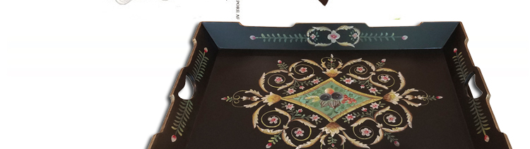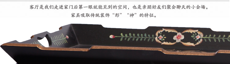 器道家具客厅中式风格方形茶几黑哑光画花托盘几储物方几TT-127-PV-127