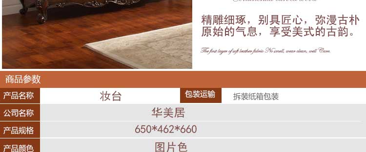 华美居 美式梳妆台 简约影楼化妆桌 美式田园小户型实木梳妆柜 R170N-50