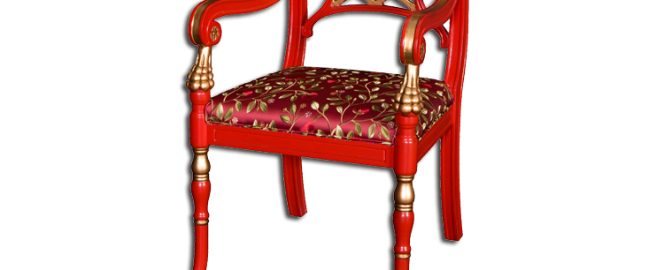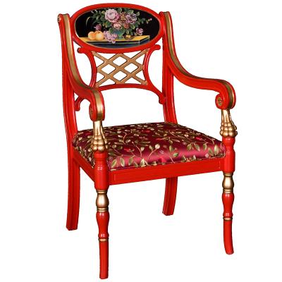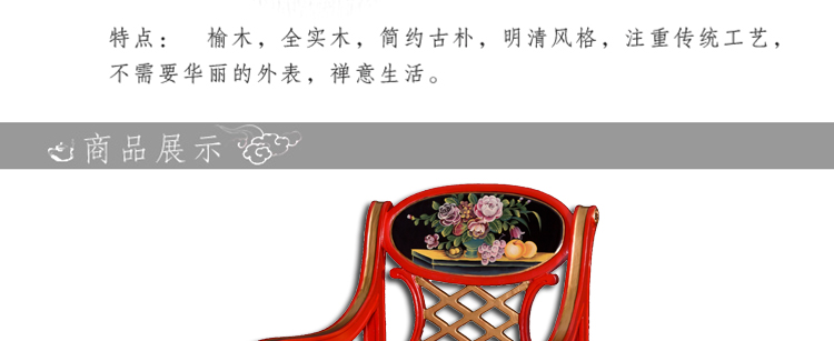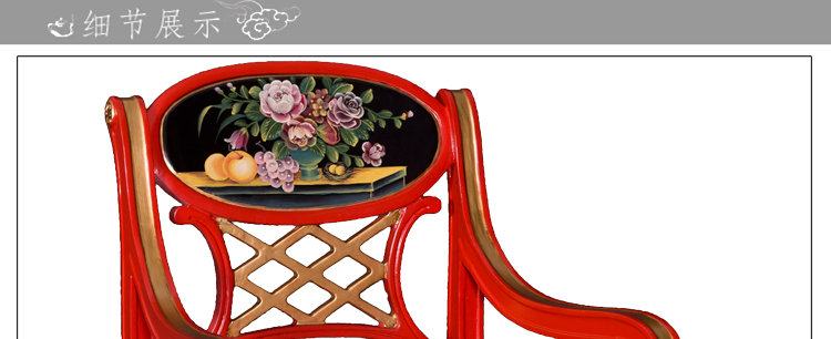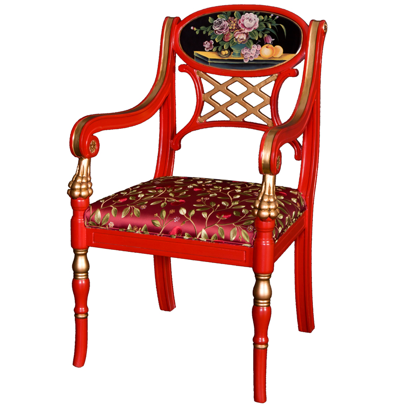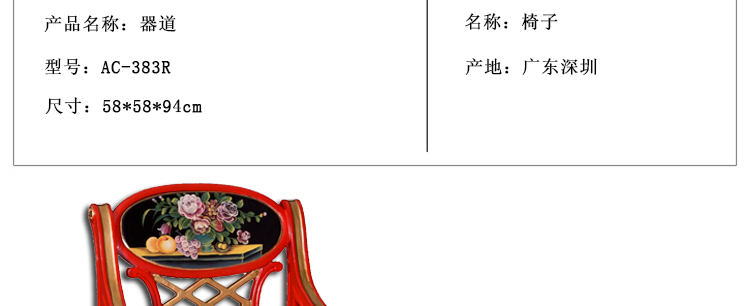 器道家具中式风格客厅画彩花生果鹅蛋圆形扶手椅(红)靠背椅AC-383R