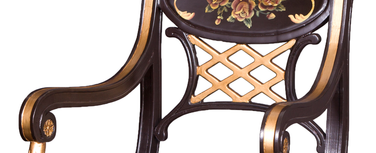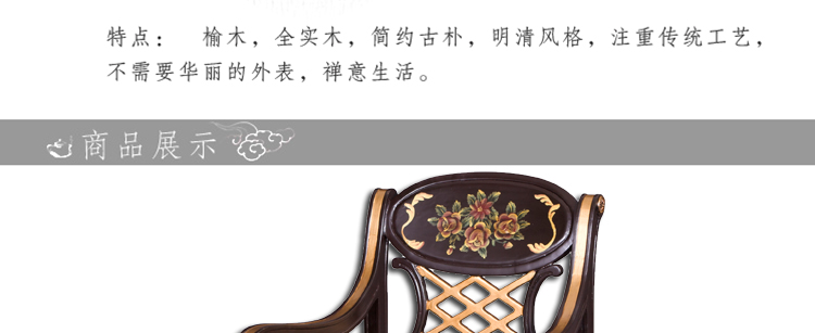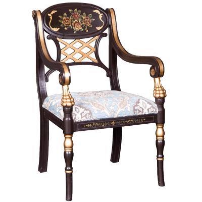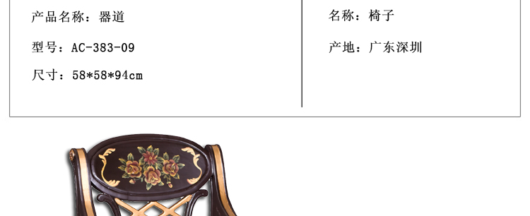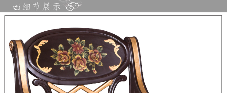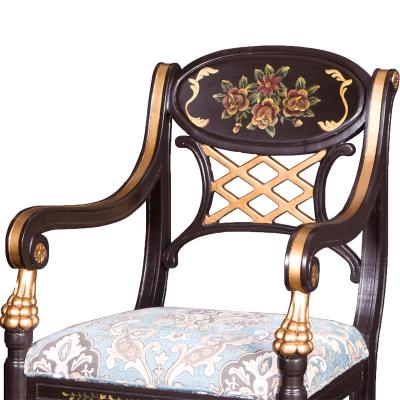 器道家具中式风格客厅黑色靠背椅画彩鹅蛋背扶手椅(黑)花色椅子AC-383-09