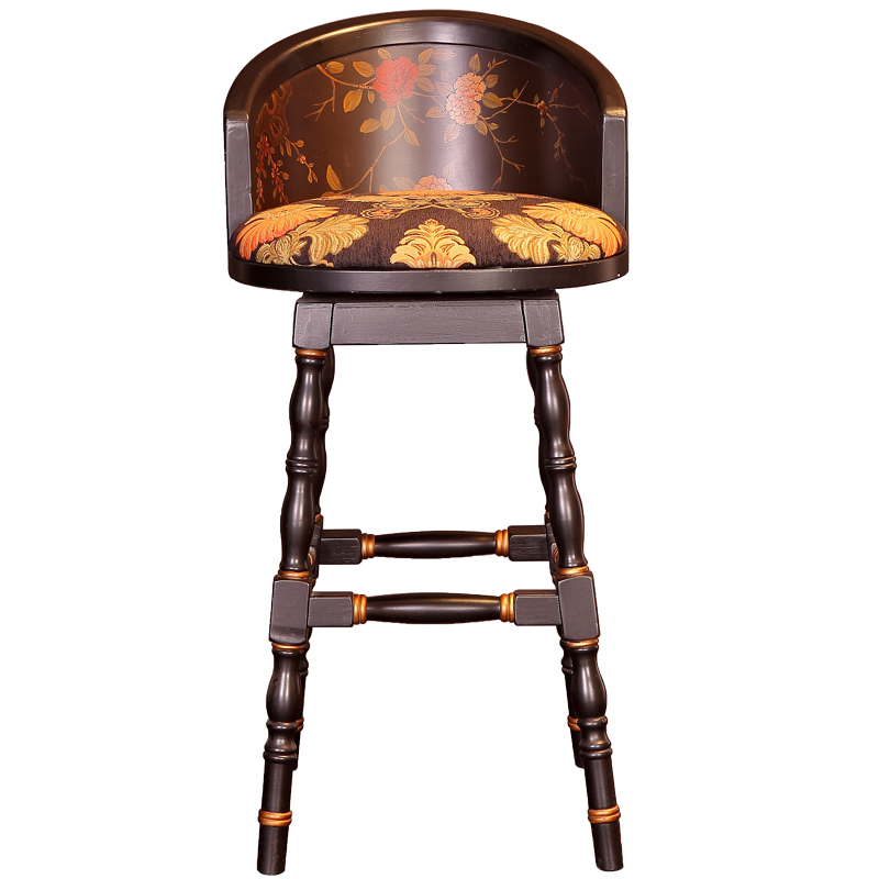 器道家具中式风格餐厅实用吧椅黑底花吧椅靠背舒适吧椅STL-107-03