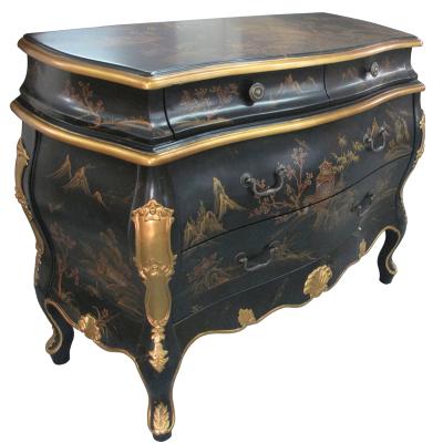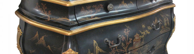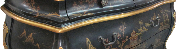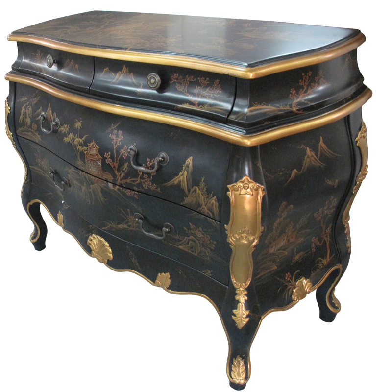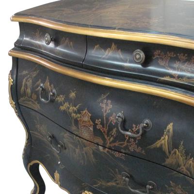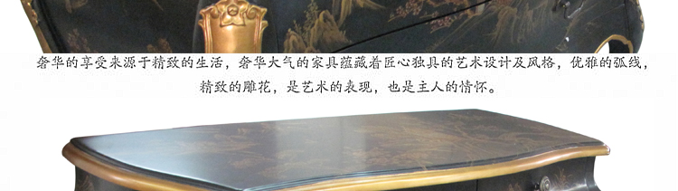器道家具中式风格客厅大容量储物装饰柜黑色堆金风景四斗衣柜C-111-410