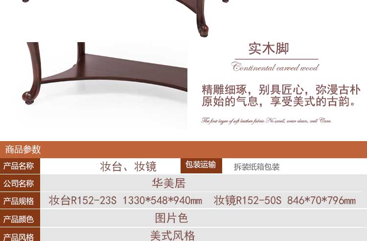 华美居 厂家直销新款妆台妆镜卧室梳妆台梳妆镜组合 R152-23S R152-50S