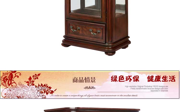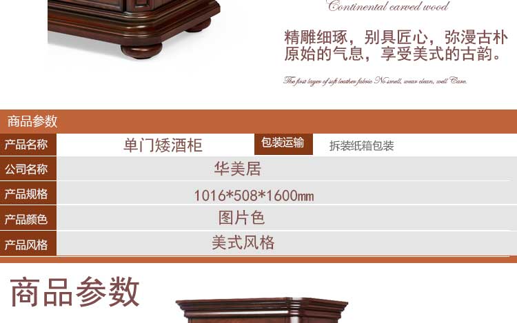华美居 新款客厅酒柜美式单门矮酒柜鹅掌楸木单门酒柜 R152-38S