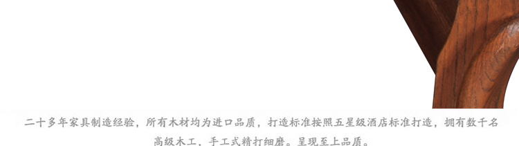 造型简练、以线为主,严格的比例关系是家具造型的基础。结构严谨、作工精细,明代中式风格家具的卯榫结构,极富有科学性。木材坚硬、纹理优美,自然优美,呈现出羽毛兽面等膝陇形象,令人有不尽的遐想。