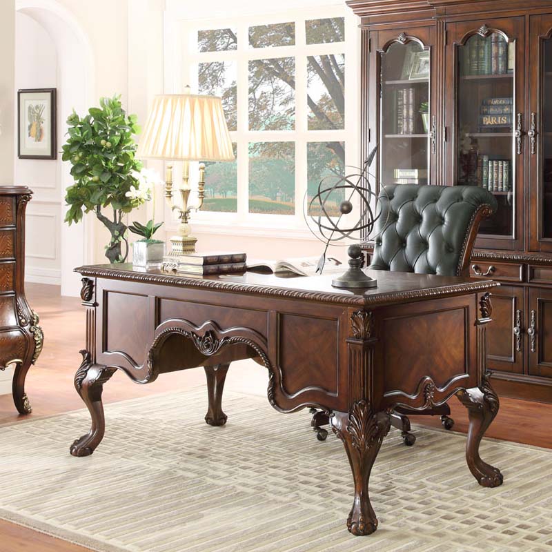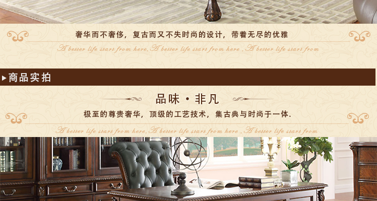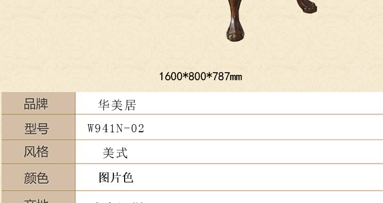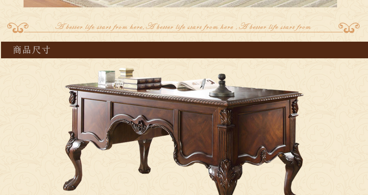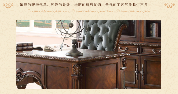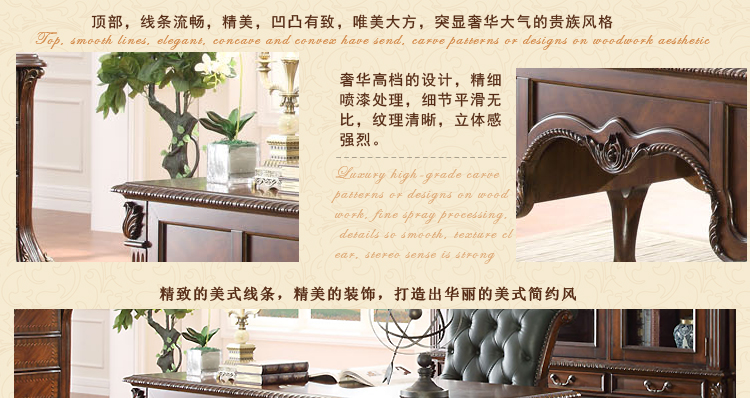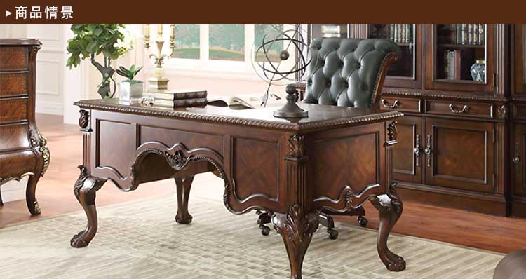 华美居 鹅掌楸木四脚写字桌美式新款书台百搭型工作台 W941N-02