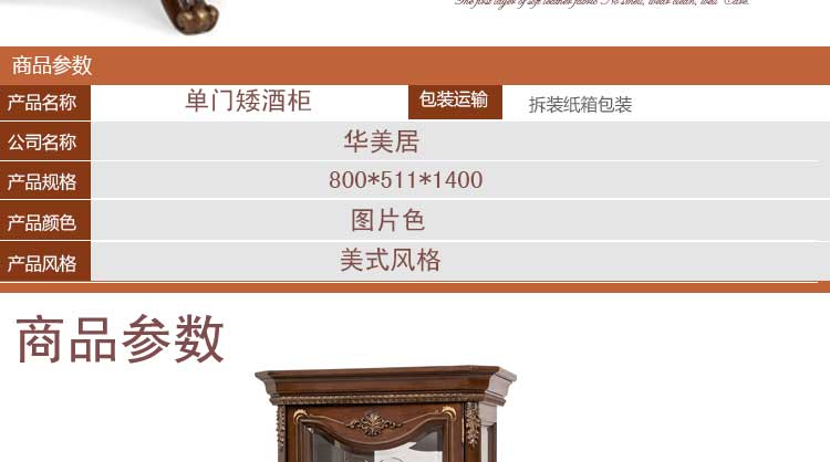 华美居 新款客厅酒柜美式单门矮酒柜鹅掌楸木单门酒柜 R191N-38S