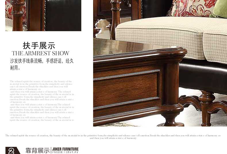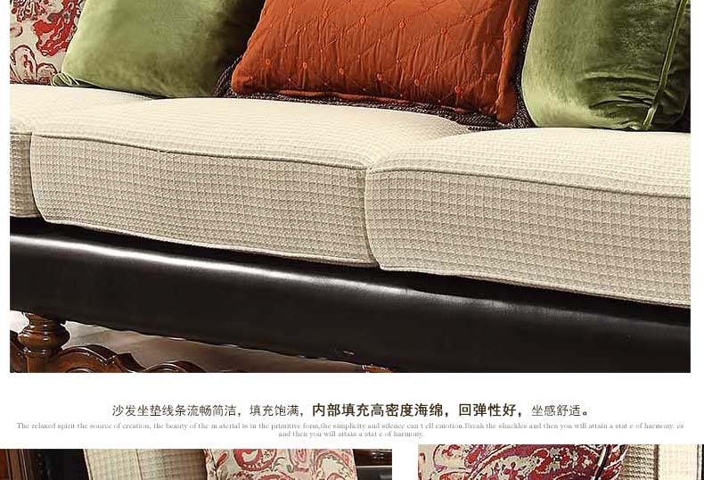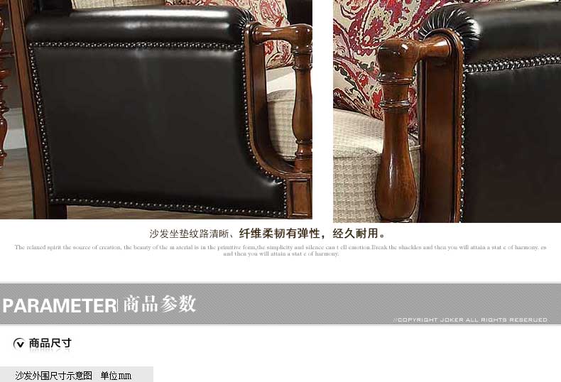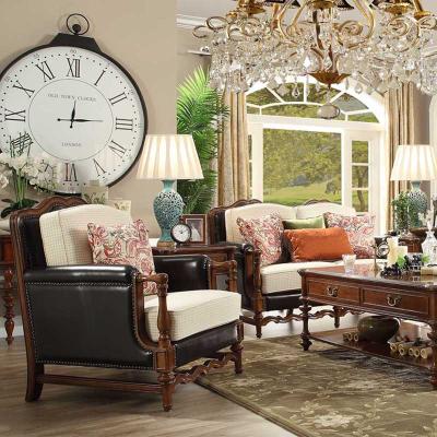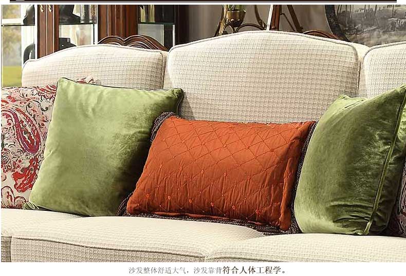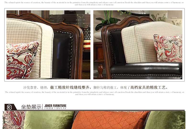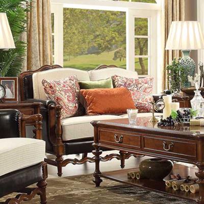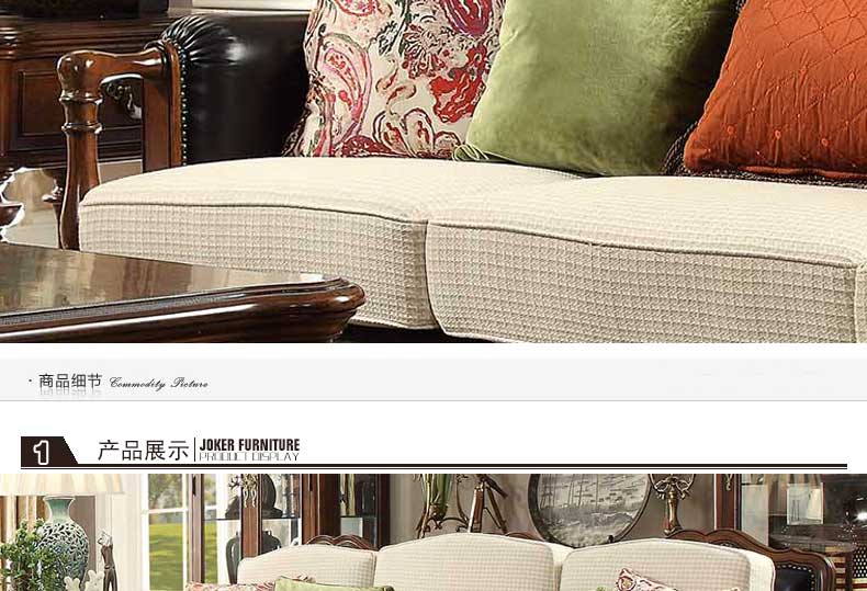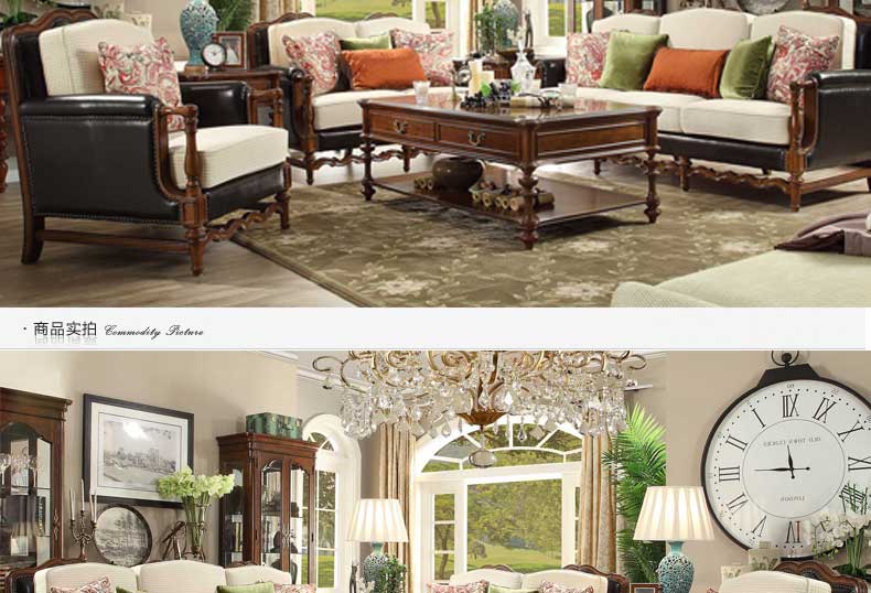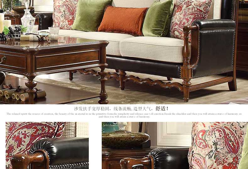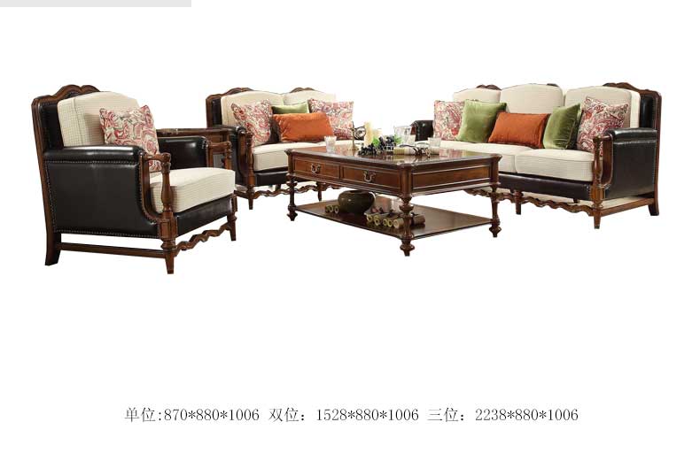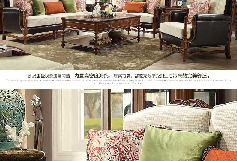 华美居 全实木皮艺沙发组合 三人位沙发美式沙发 客厅家具 306