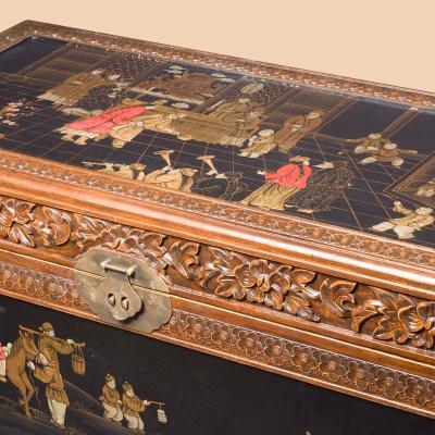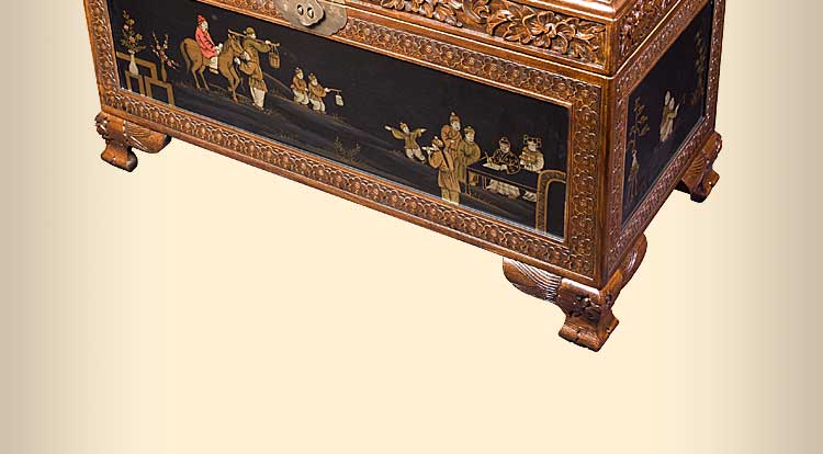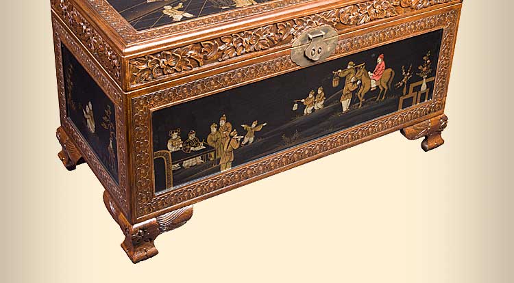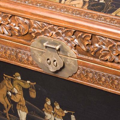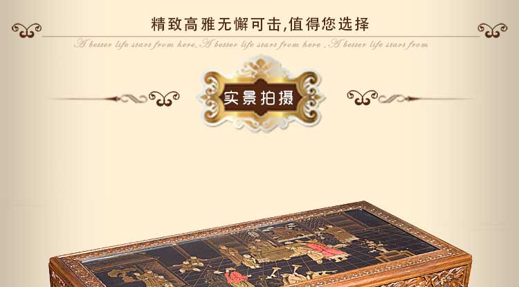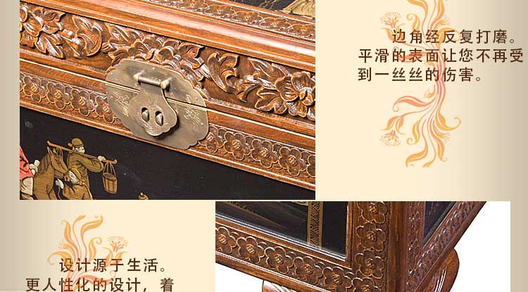 器道家具新款客厅茶几实木雕花画人物樟木箱CH-883