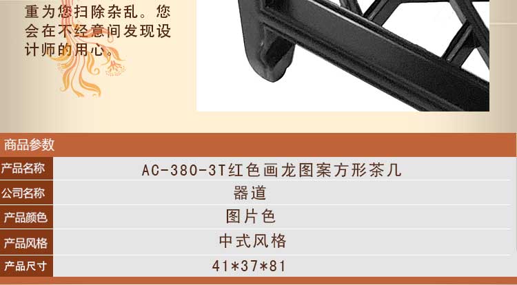 器道家具新款客厅红色画龙图案方形茶几AC-380-3T