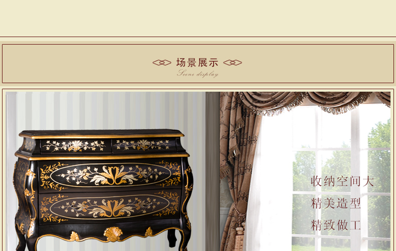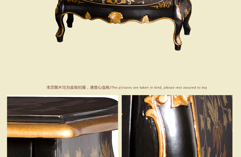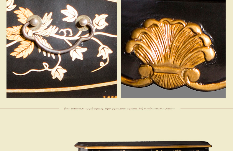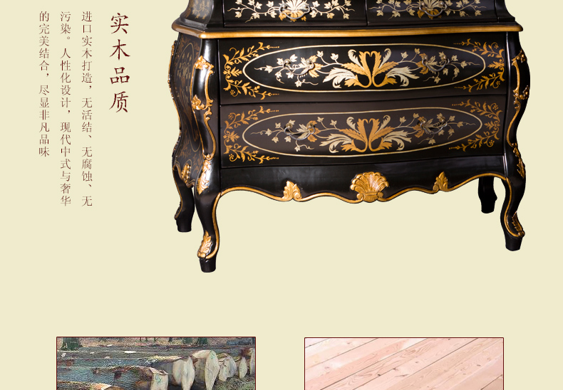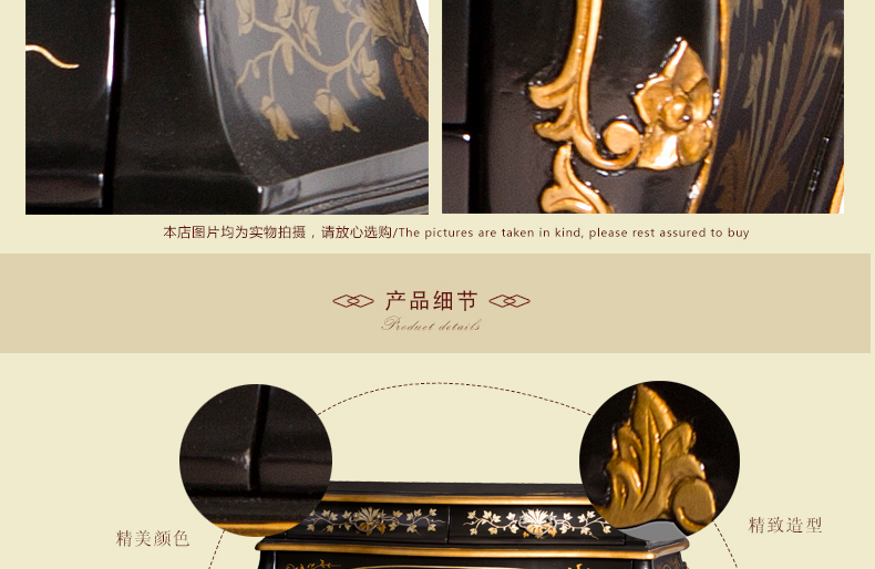 器道家具实木高档中式风格黑画花弯身梳妆柜C-685
