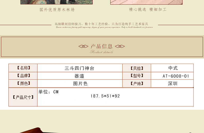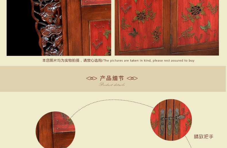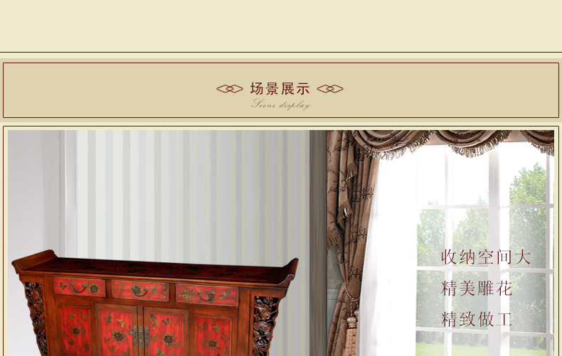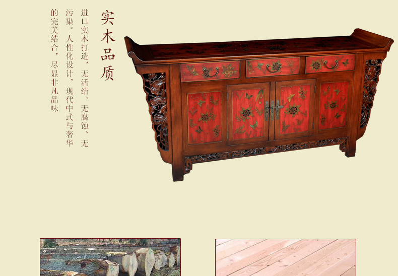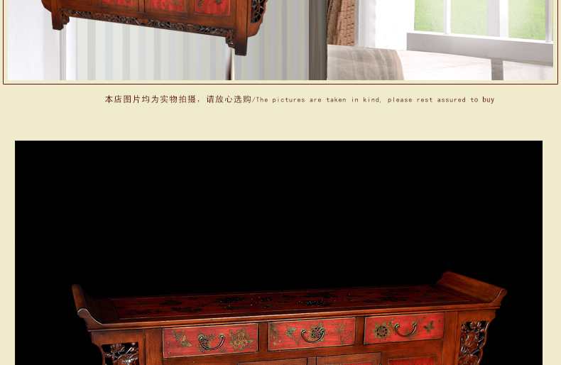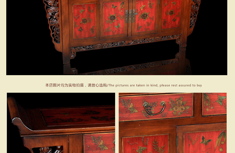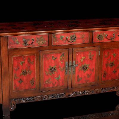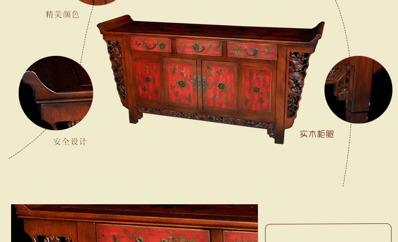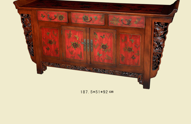 器道家具新款装饰柜餐边柜红色画花三斗四门神台AT-6008-01