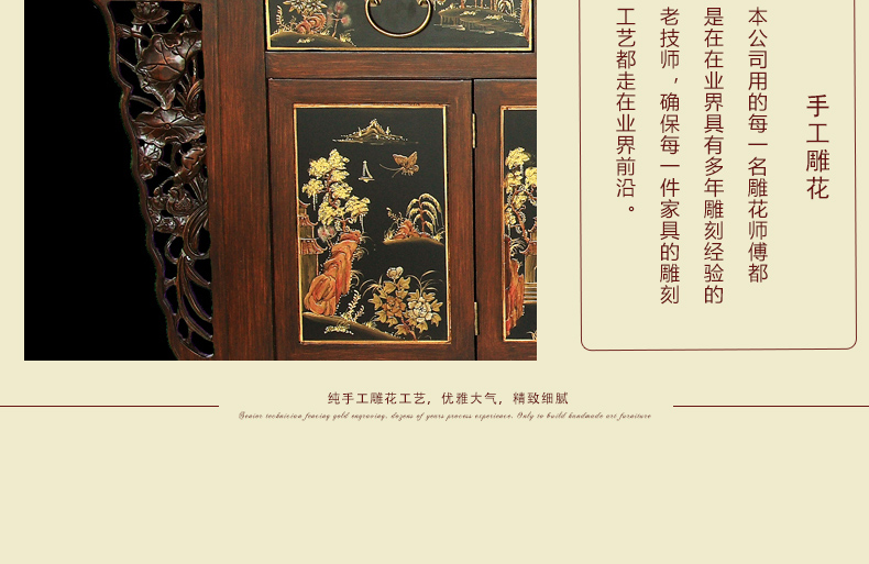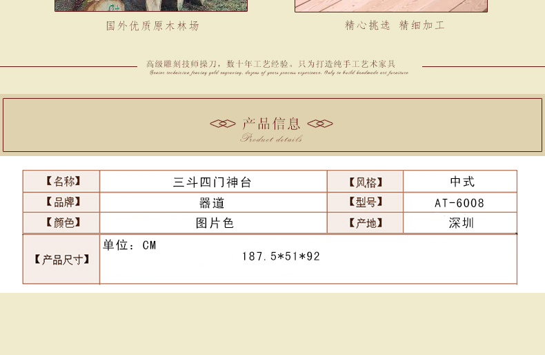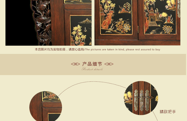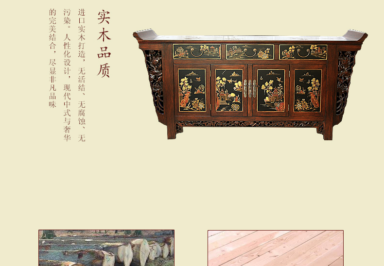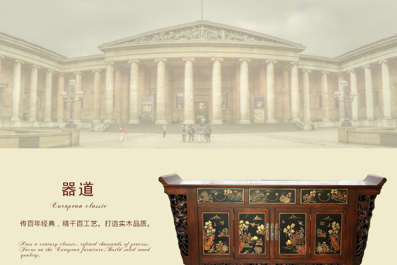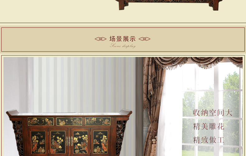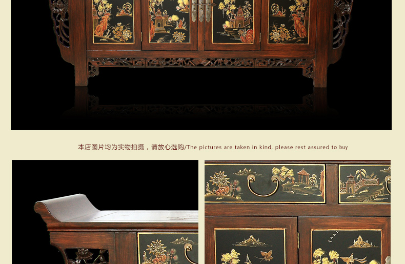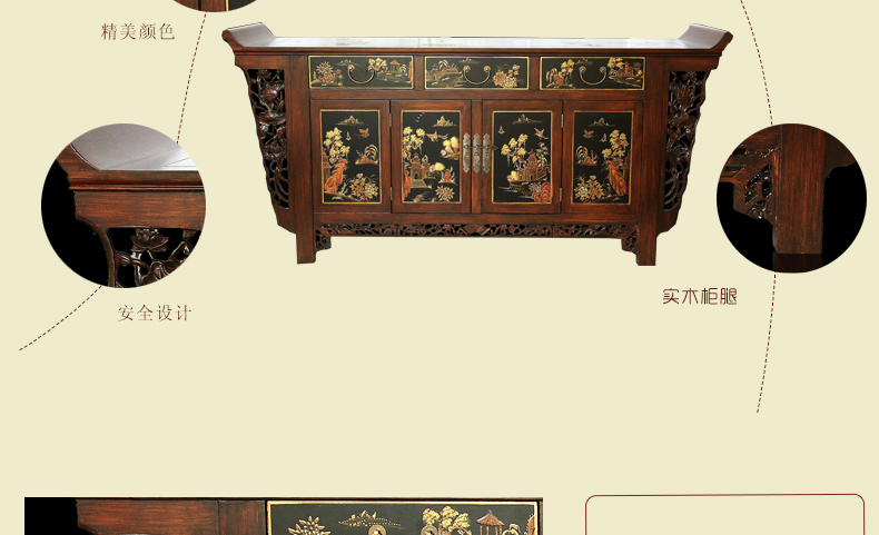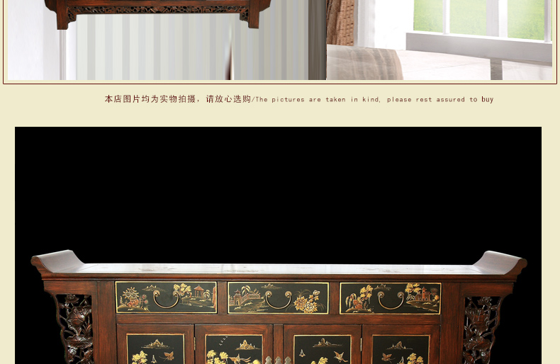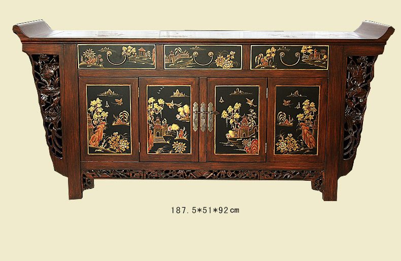 器道家具新款实木装饰柜餐边柜啡色画花三斗四门神台AT-6008