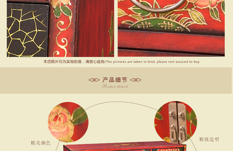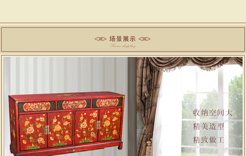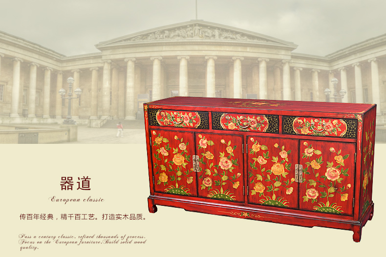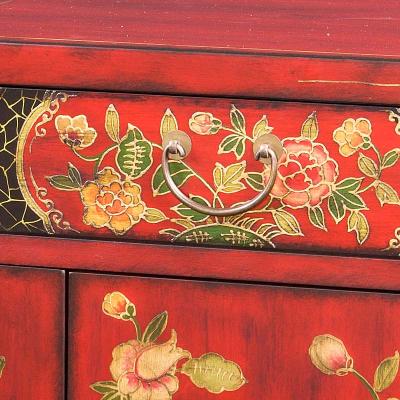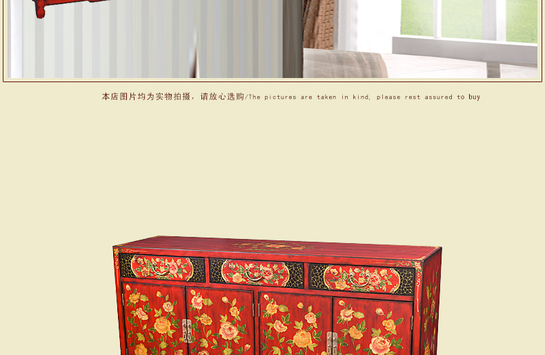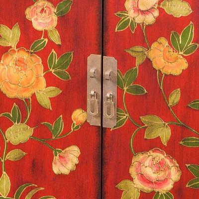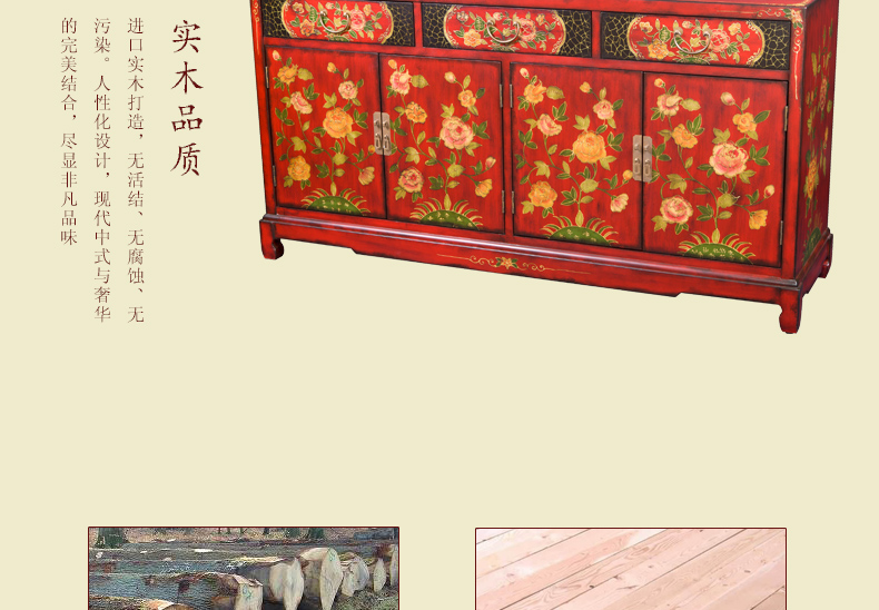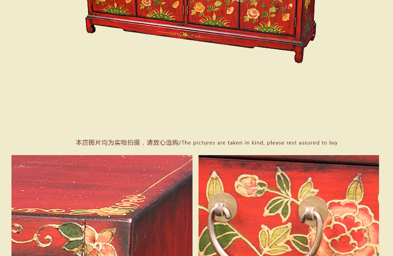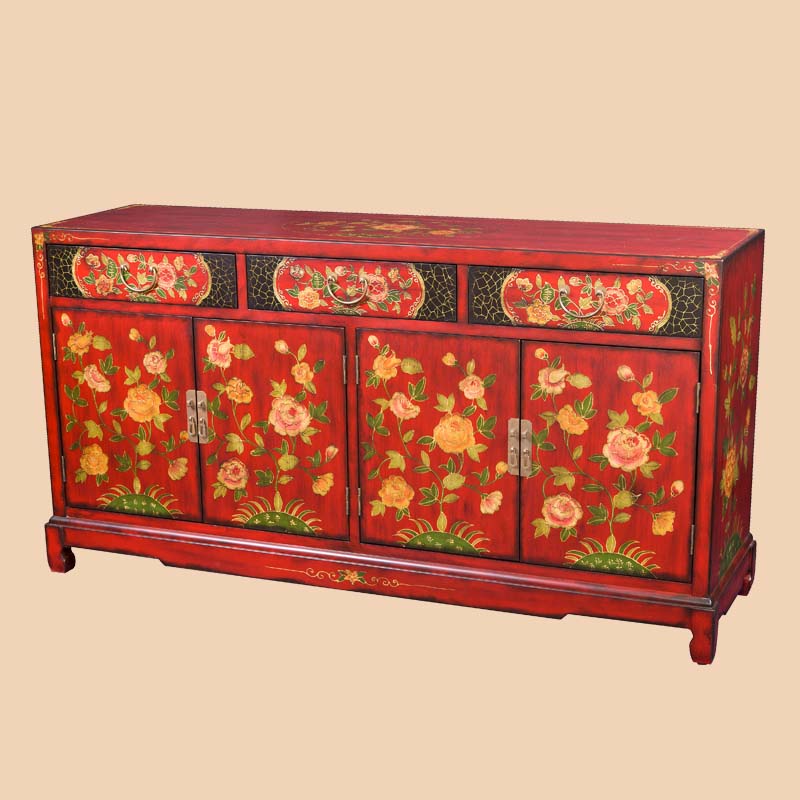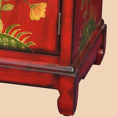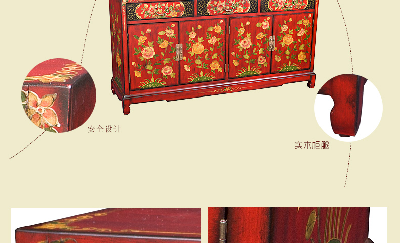 器道家具新款实木红色画西藏花三斗双门柜PF-676-01