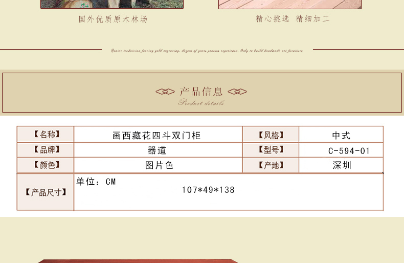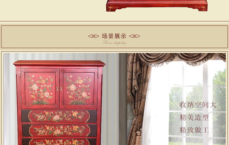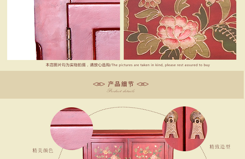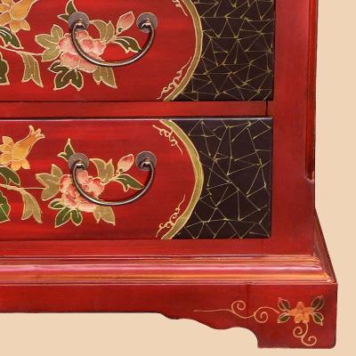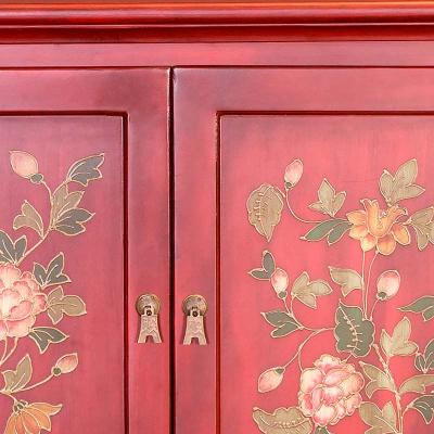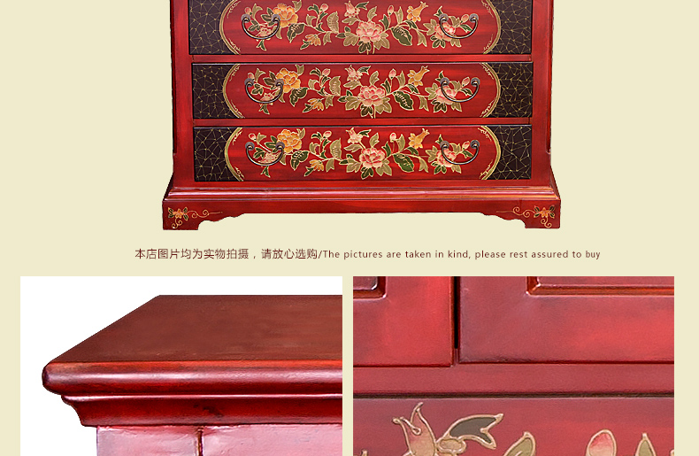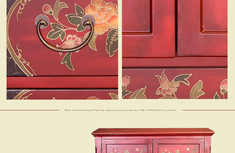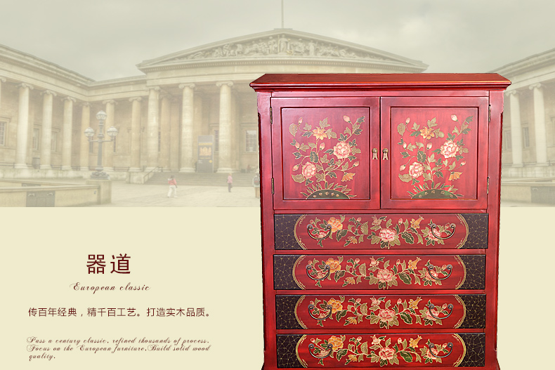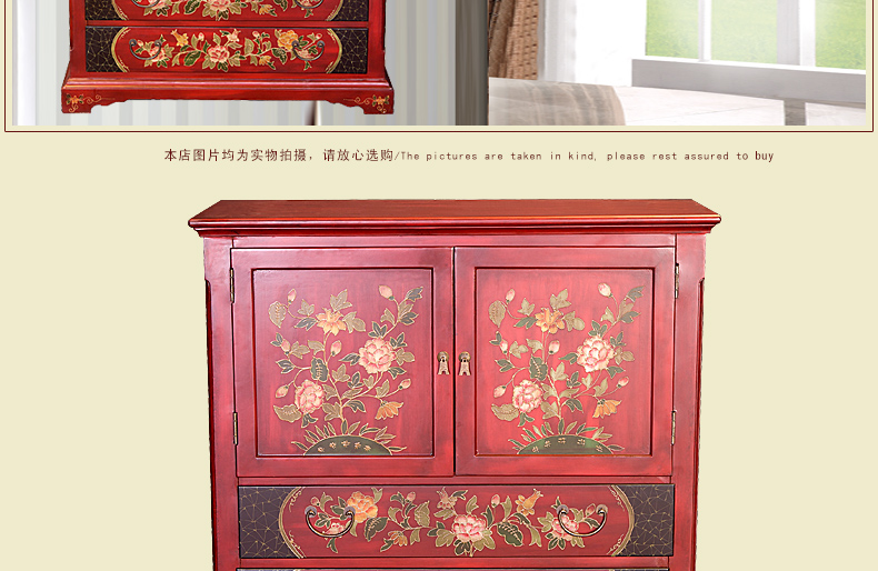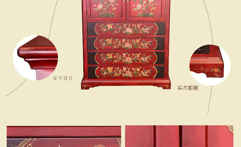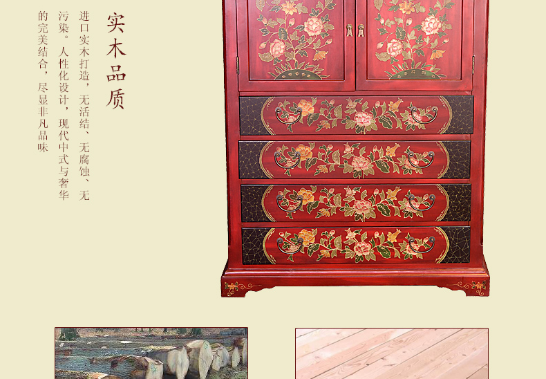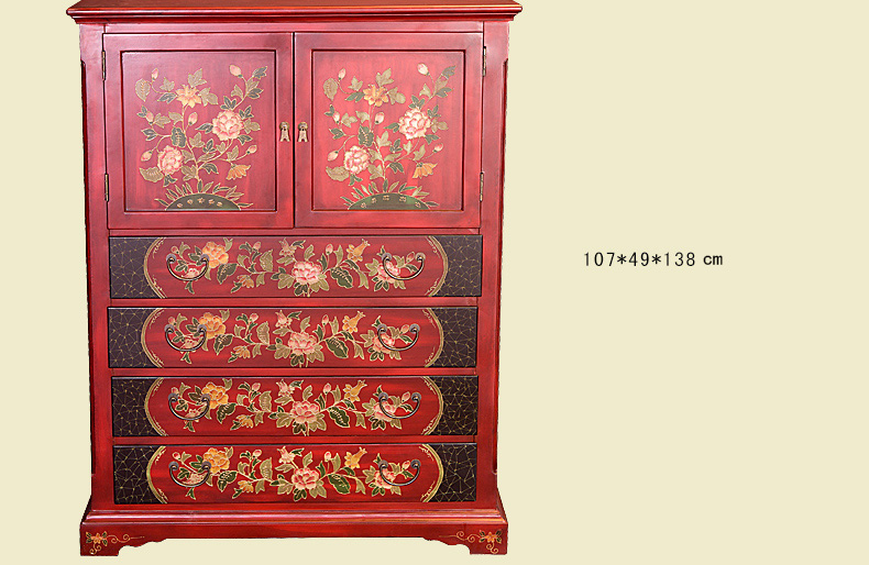 器道家具新款实木红色画西藏花四斗双门柜C-594-01