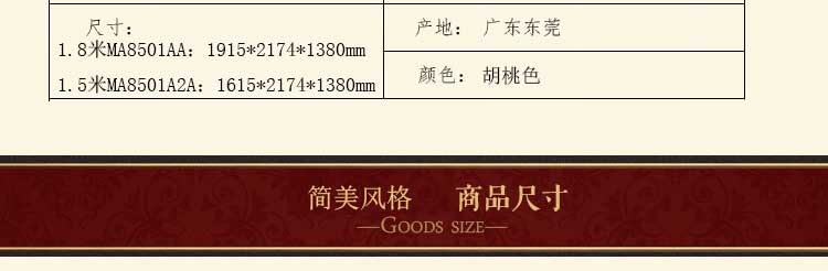 外围尺寸:1.8米MA8501AA:1915*2174*1380mm; 1.5米MA8501A2A:1615*2174*1380mm。