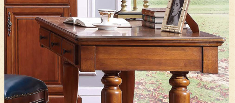 美墅家具简美乡村风格实木书房储物简约书桌写字桌台MA8305AA