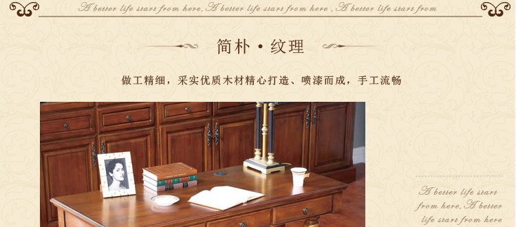 美式家具外观和用料保持自然、淳朴的风格,自在、随意的不羁生活方式,没有太多造作的修饰与约束,不经意中也成就了另外一种休闲式的浪漫。