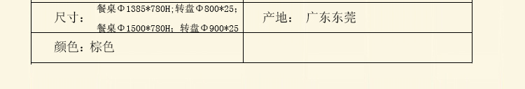 尺寸:餐桌:Φ1385*780H;Φ1500*780H
