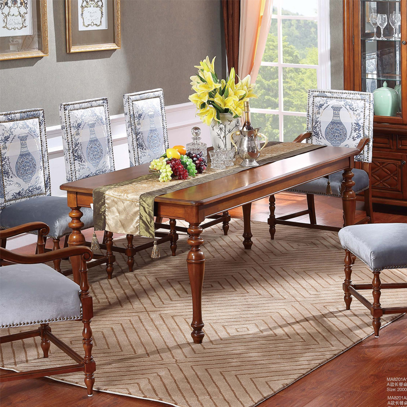 美墅美式乡村做旧全实木餐桌 简约复古小户型长方形餐桌6人饭桌MA8201A1A