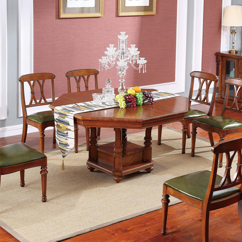 美墅复古美式乡村实木桌子家用客厅八角餐桌6-8人饭桌家具MA8213AA