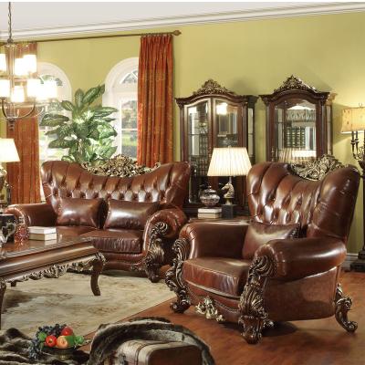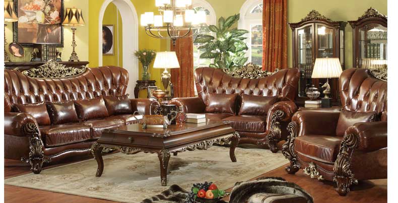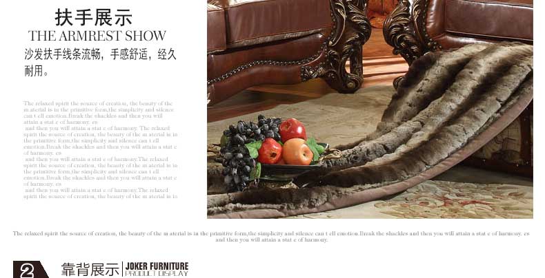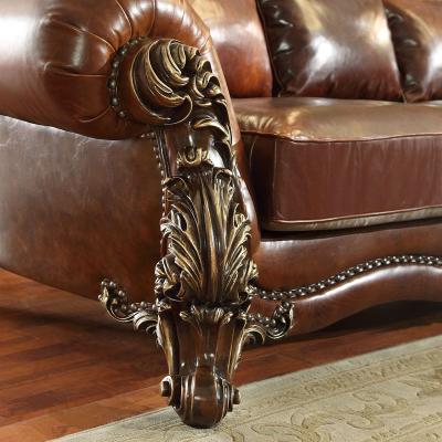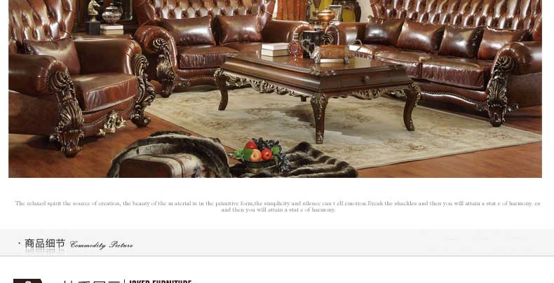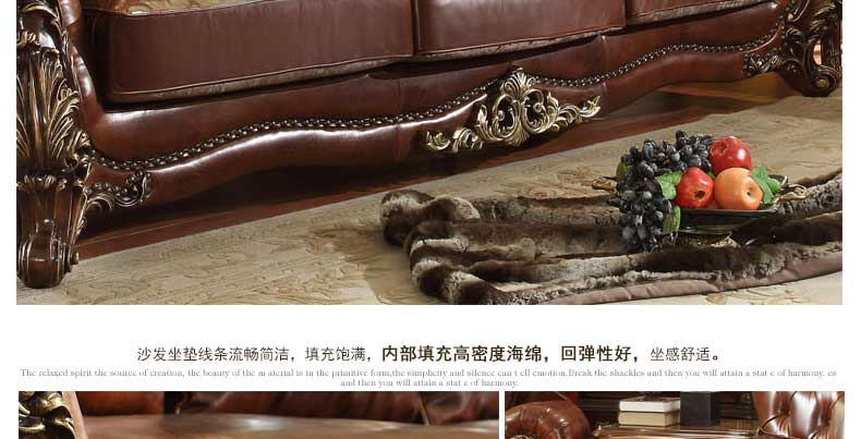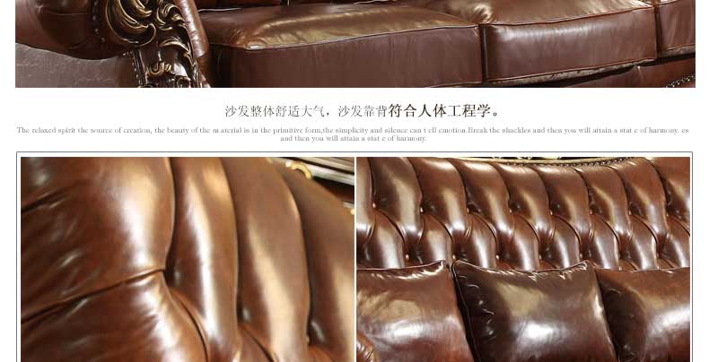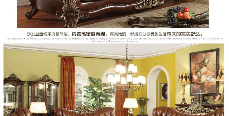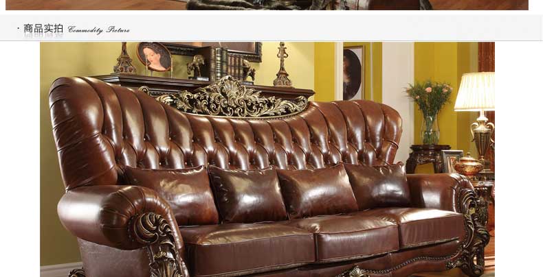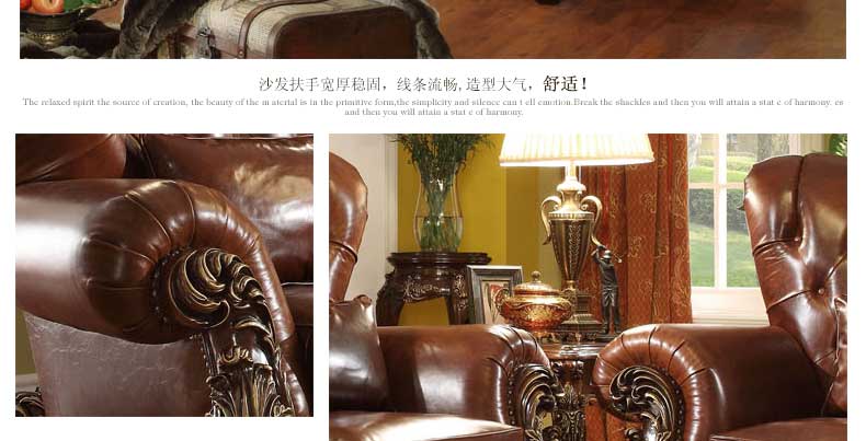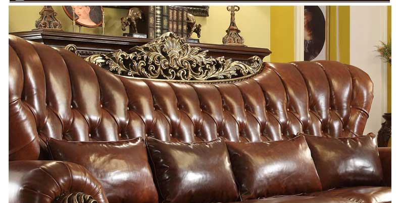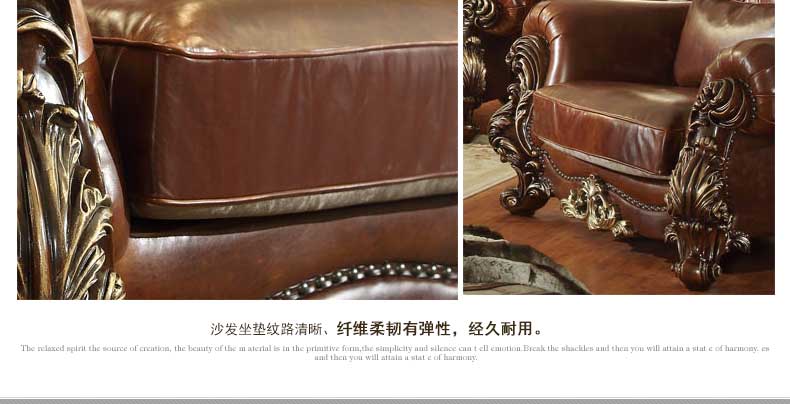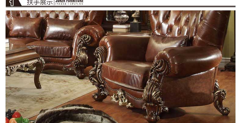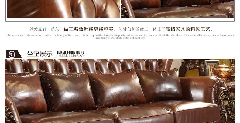 华美居 美式真皮沙发组合新古典客厅实木雕花家具美式真皮沙发123C-049