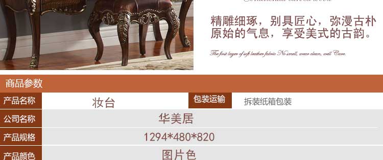 华美居 美式梳妆台小户型美式梳妆台复古卧室实木化妆桌家具R192N-21