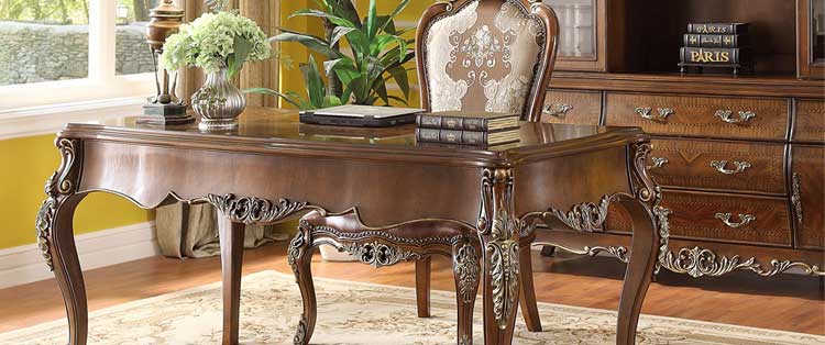 华美居 美式实木书桌 书房家具仿古办公桌 美式写字台电脑桌 R192N-02