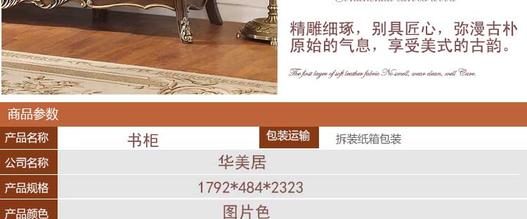 华美居 全实木书柜美式书柜美式书橱书架储物柜实木家具 R192N-31D/B