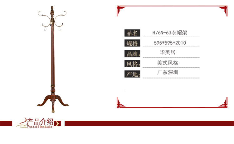 华美居 鹅掌楸木衣帽架置地衣帽架新款挂衣架 R76N-63