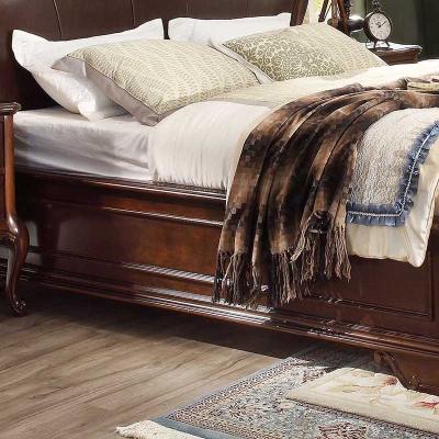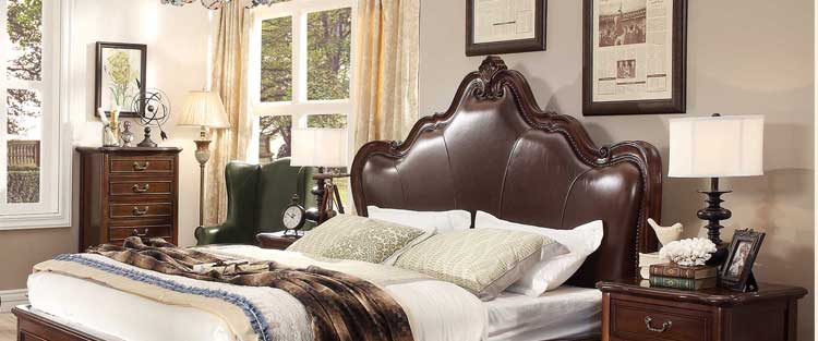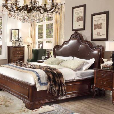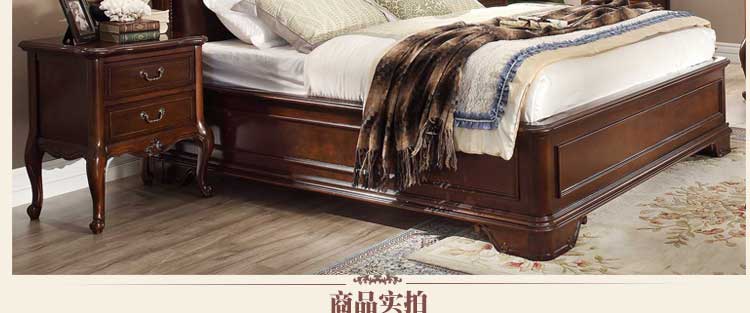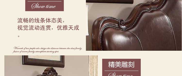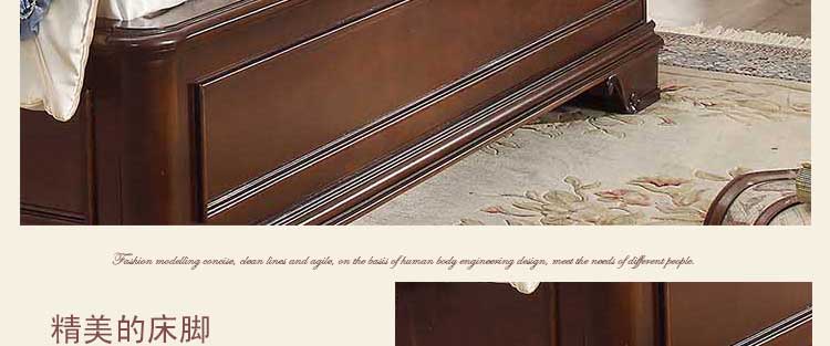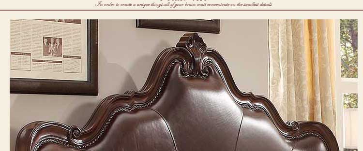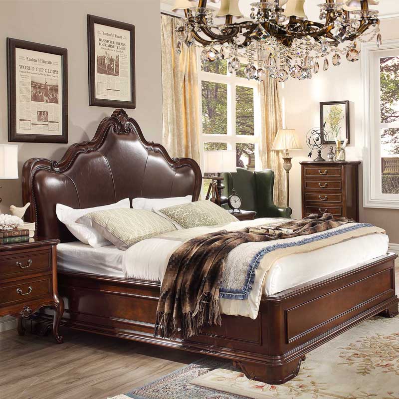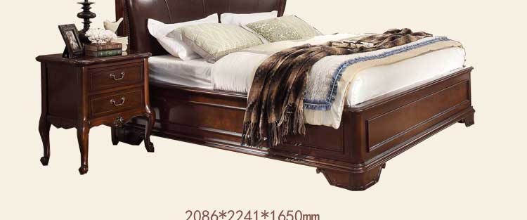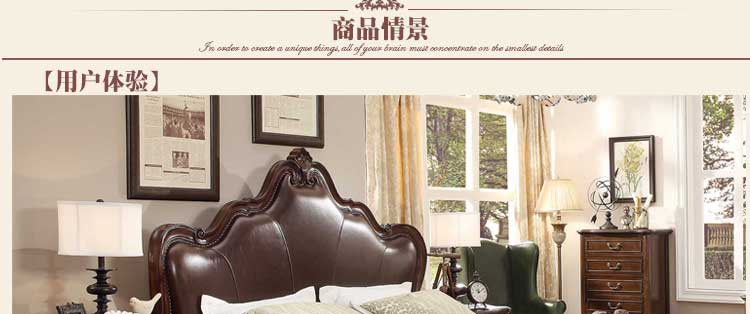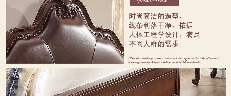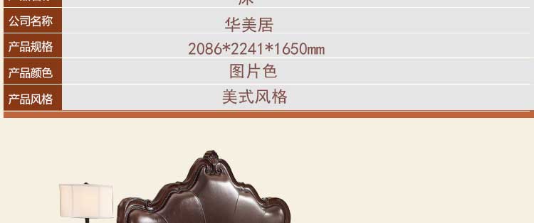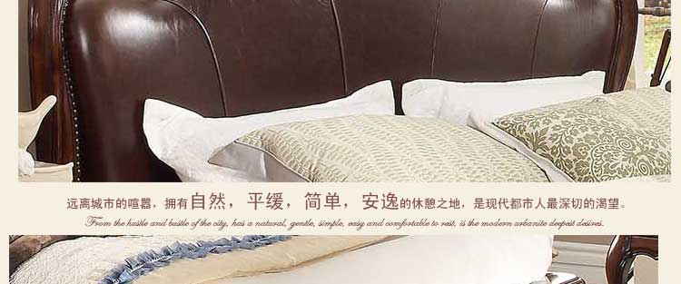 华美居 美式床 全实木床 美式双人皮床 复古真皮床1.8米 B300N-70/1/7