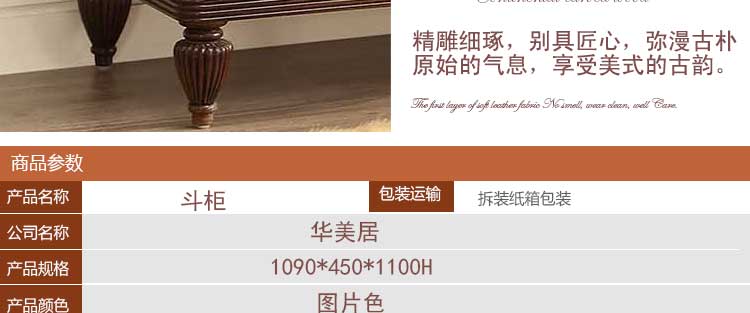 华美居 简美实木斗柜简约五斗橱美式乡村卧室五斗柜客厅储物柜子B310N-14