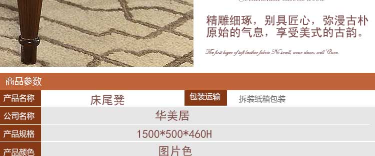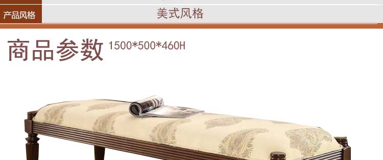 华美居 全实木家具 换鞋凳 穿鞋凳 床尾凳 长凳子 美式韩式 B310N-41