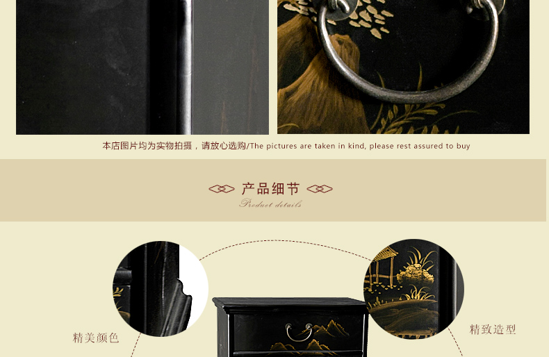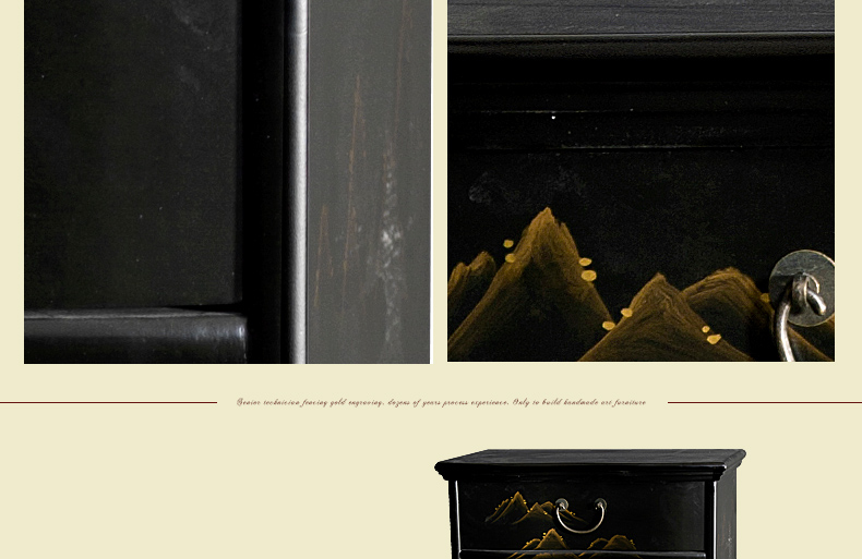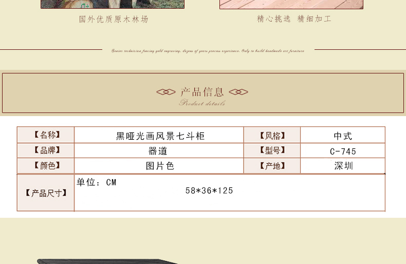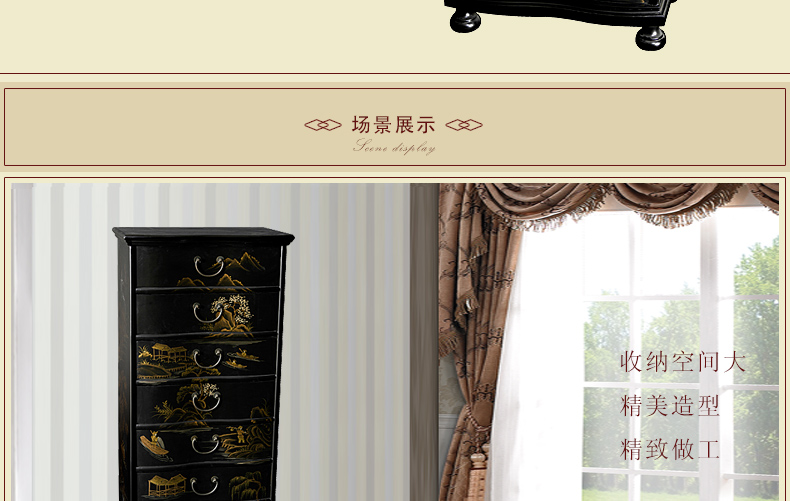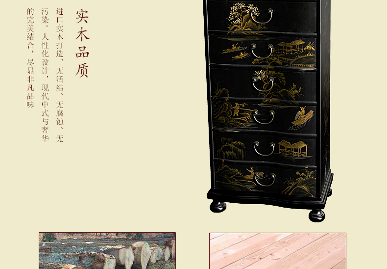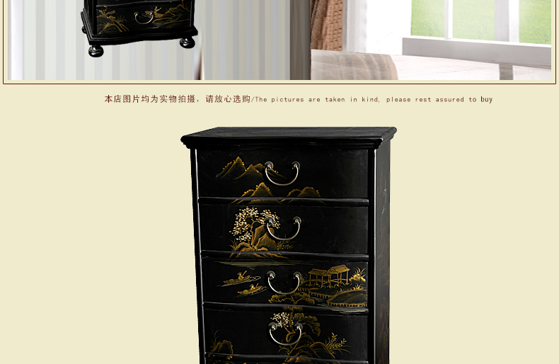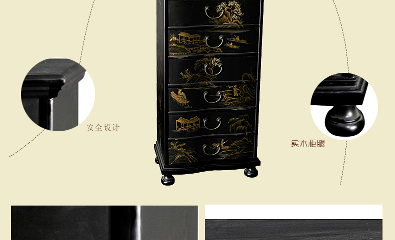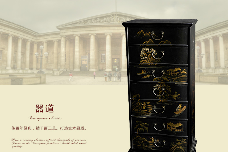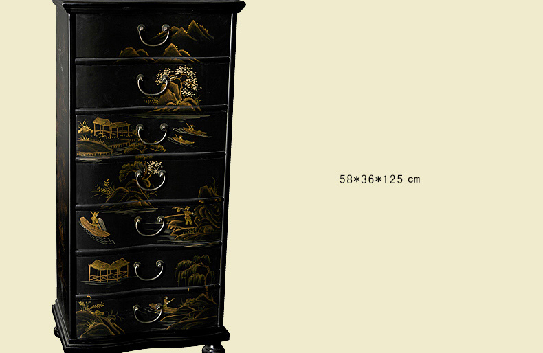 器道家具新款实木高档装饰柜斗柜黑哑光画风景七斗柜C-745