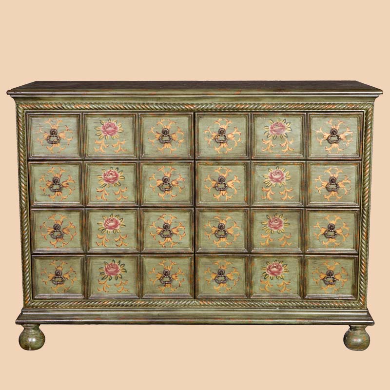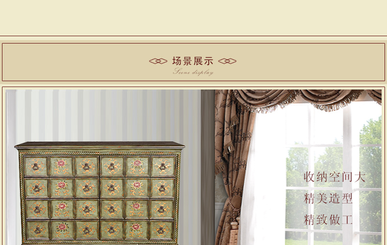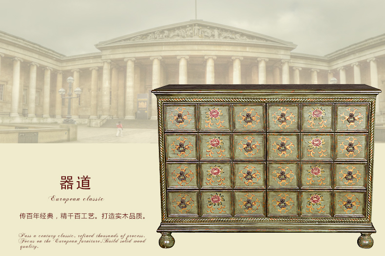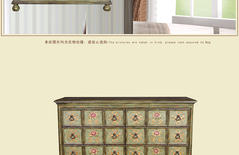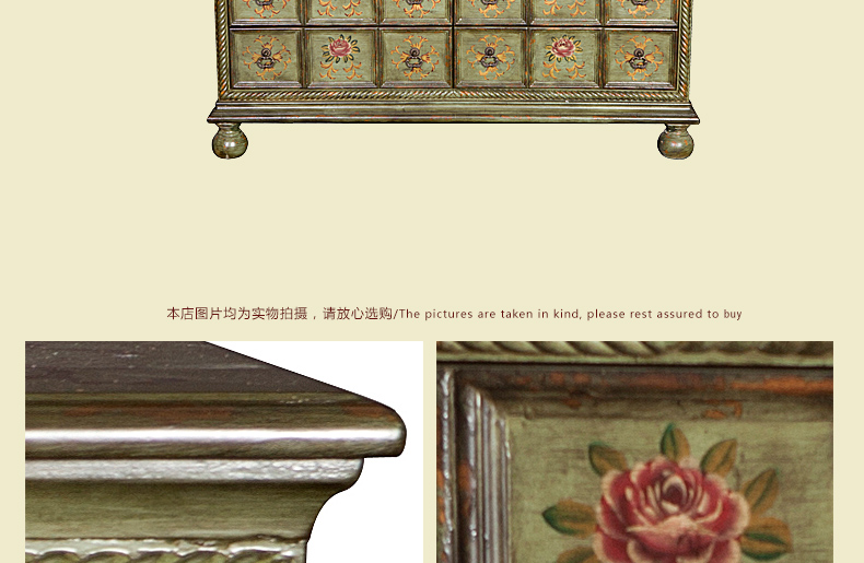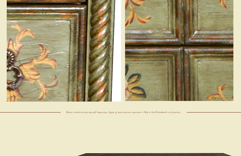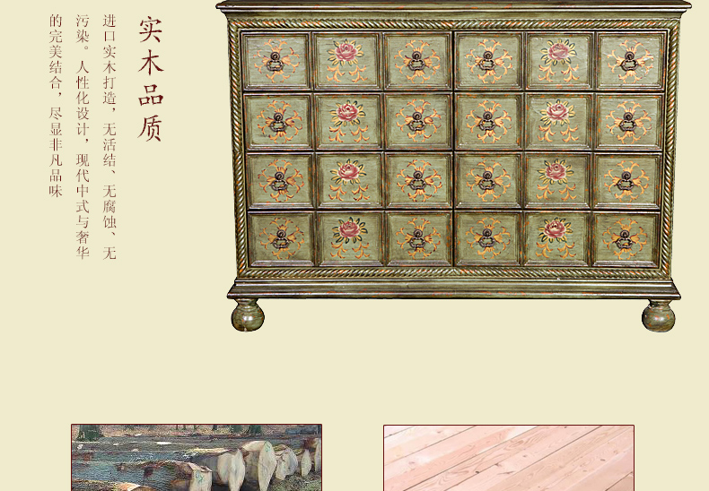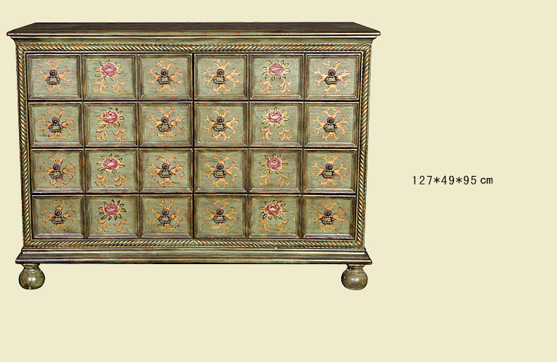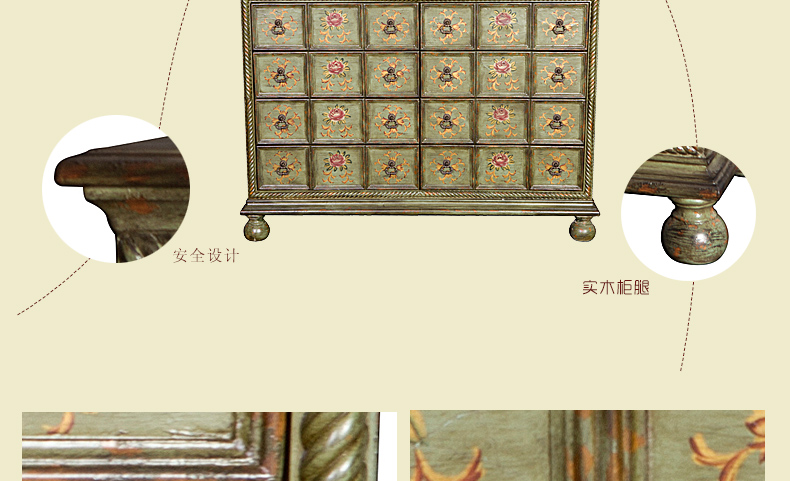 器道家具新款卧室实木绿色仿旧画花八斗柜C-6031LK-01