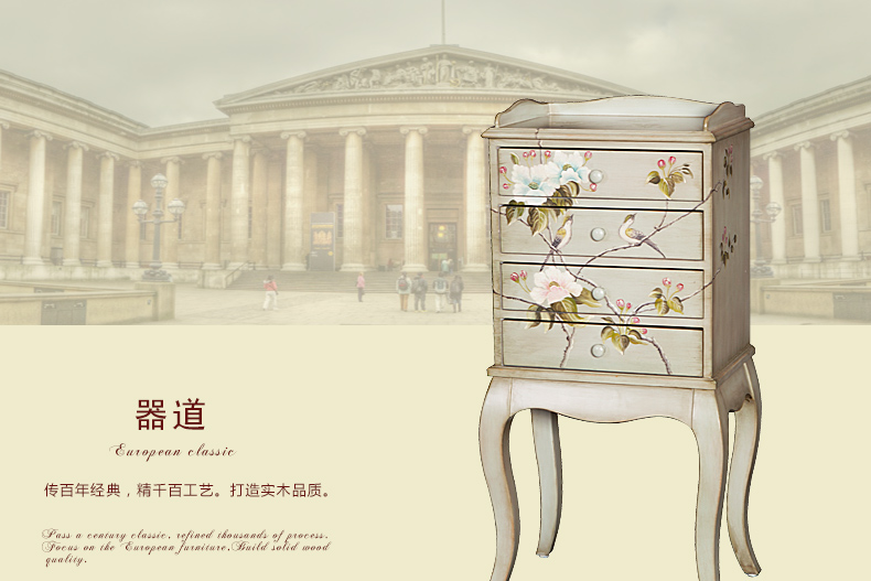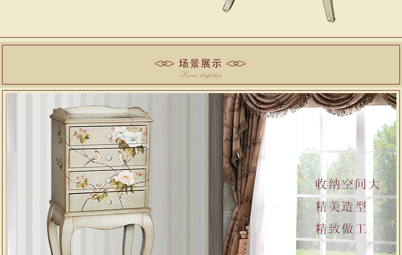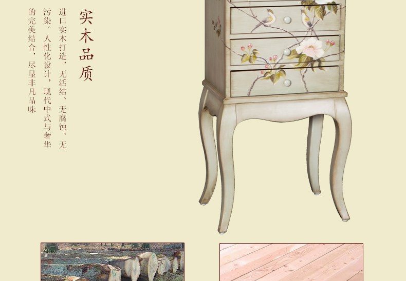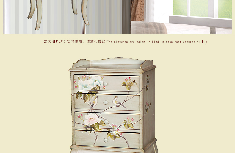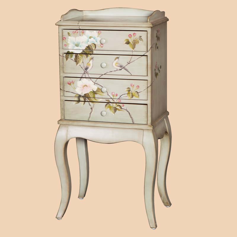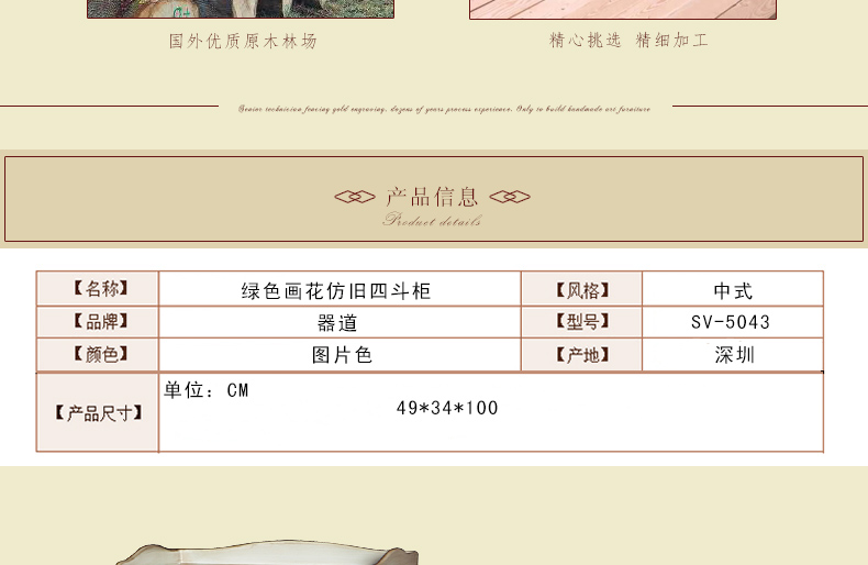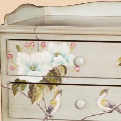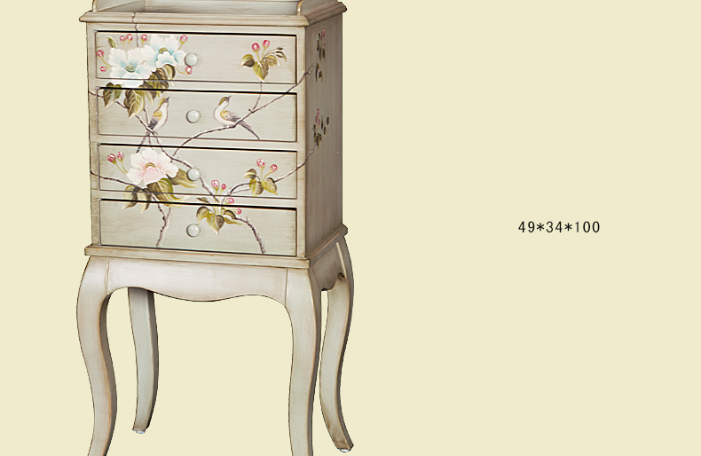 器道家具新款卧室实木绿色画花仿旧四斗柜SV-5043