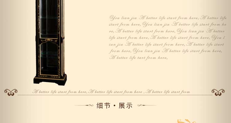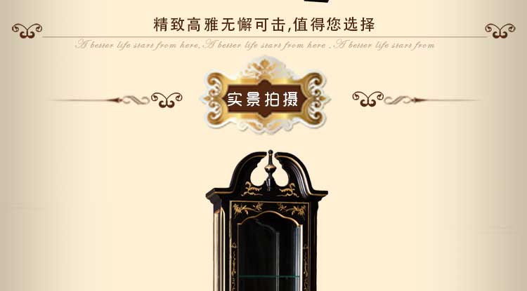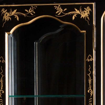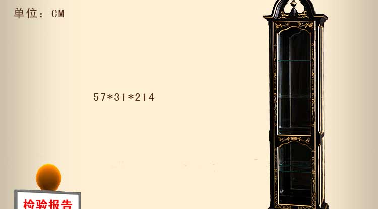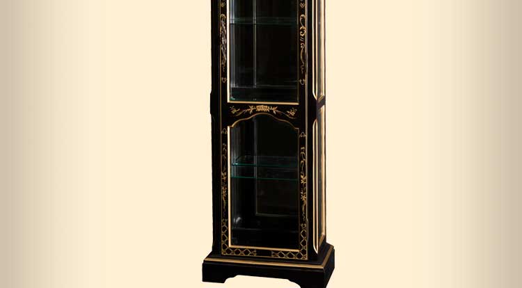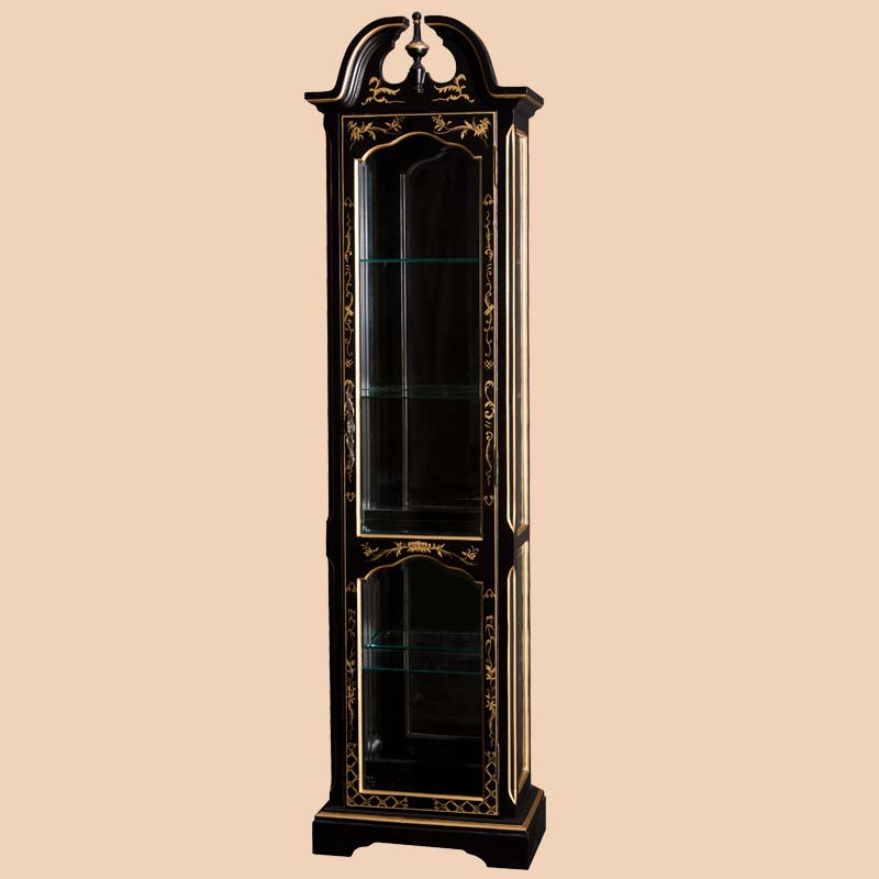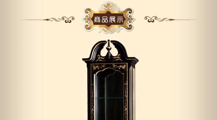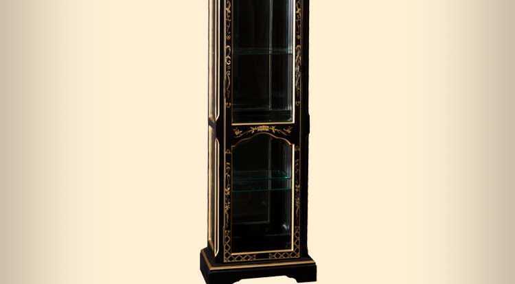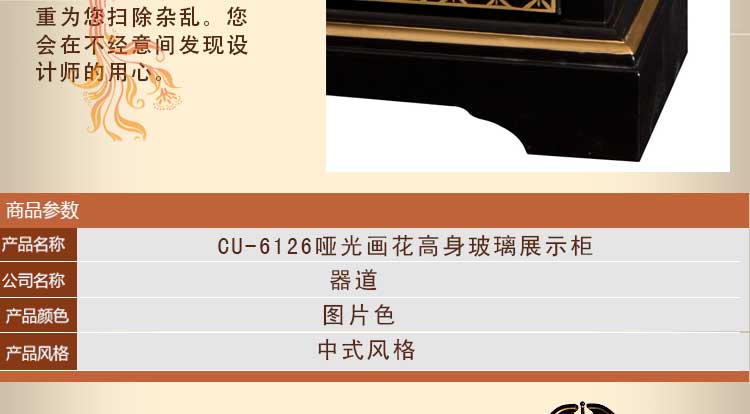 器道家具新款实木装饰柜黑色哑光画花 高身玻璃展示柜CU-6126
