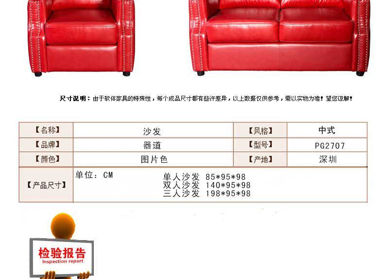 外围尺寸:PG2707单人沙发 85*95*98 PG2707双人沙发 140*95*98 PG2707三人沙发 198*95*98