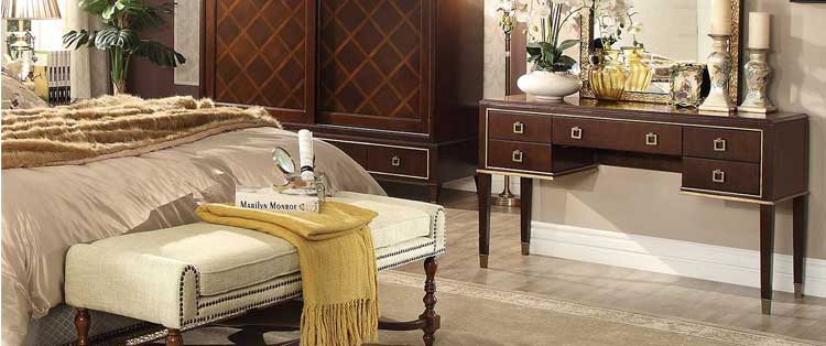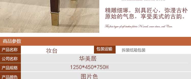 华美居 美式乡村实木梳妆台 小户型卧室迷你美式化妆台 B313N-21