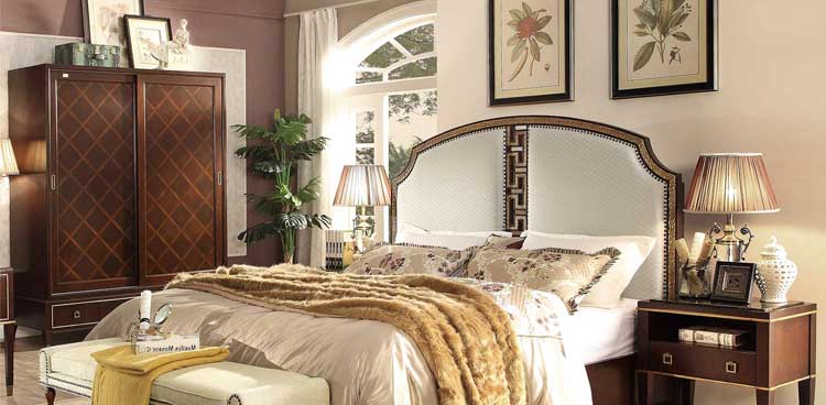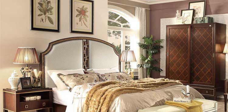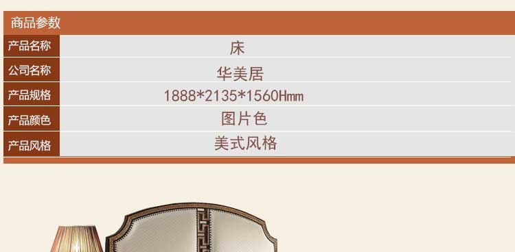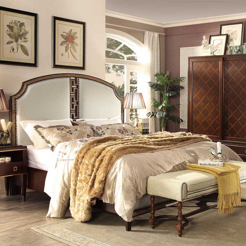 华美居 美式床全实木床白色美式双人1.5米婚床复古家具 B313N-70/1/7