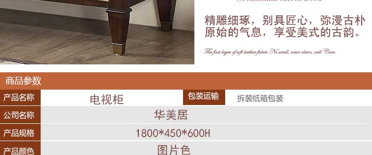 华美居 纯实木电视柜 1.8米电视柜组合柜美式客厅简约家具 B313N-39