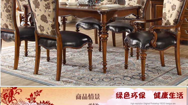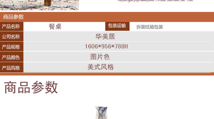 华美居 美式实木餐桌椅组合 餐桌长形饭桌小户型餐台 B303N-624