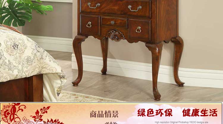 华美居 美式家具 简美实木斗柜床头柜床边柜 美式卧室储物收纳柜 B306N-14