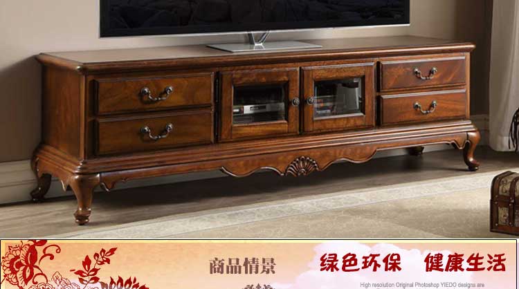 华美居 简约美式实木电视柜 现代小户型客厅复古电视柜 B306N-39L